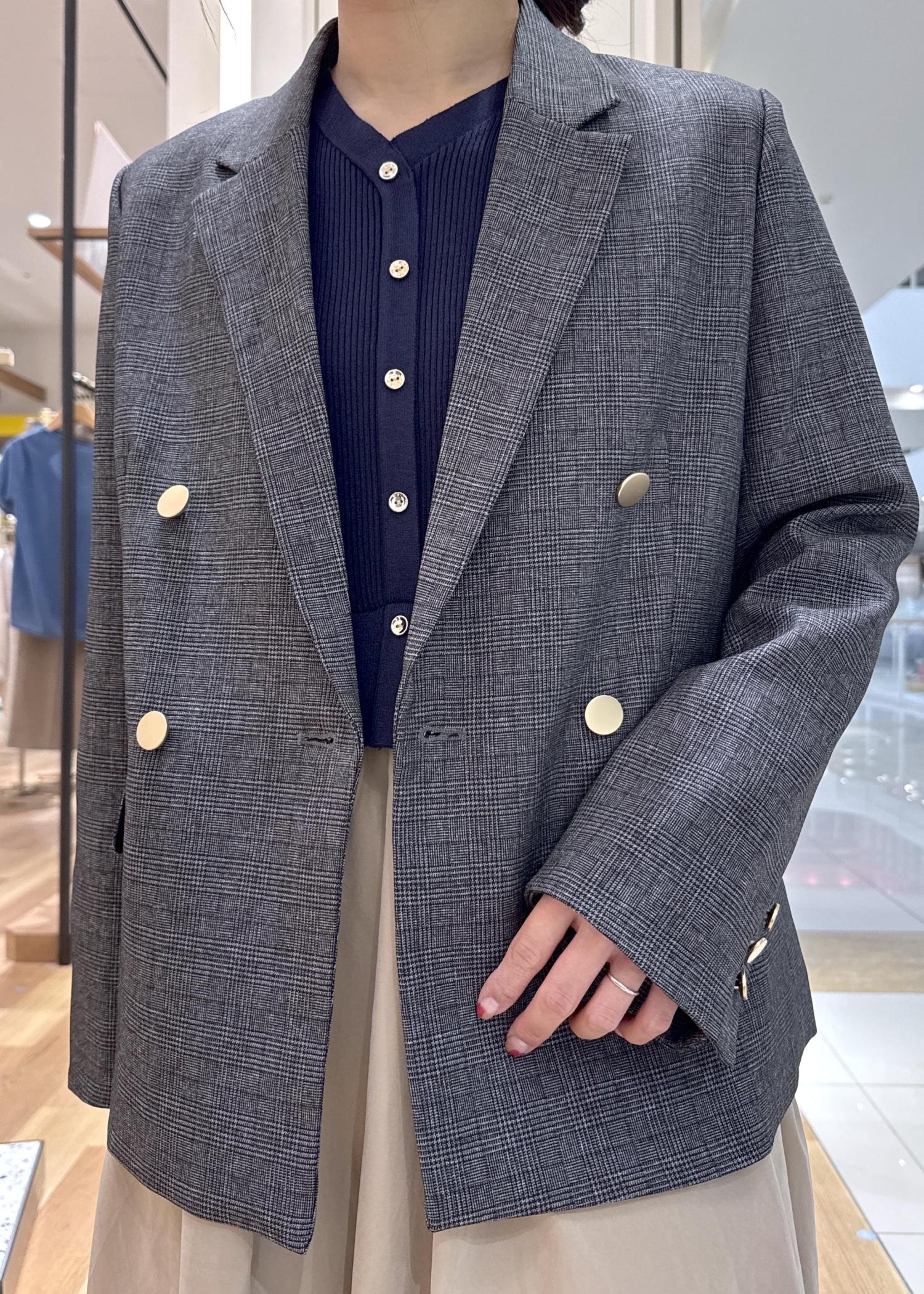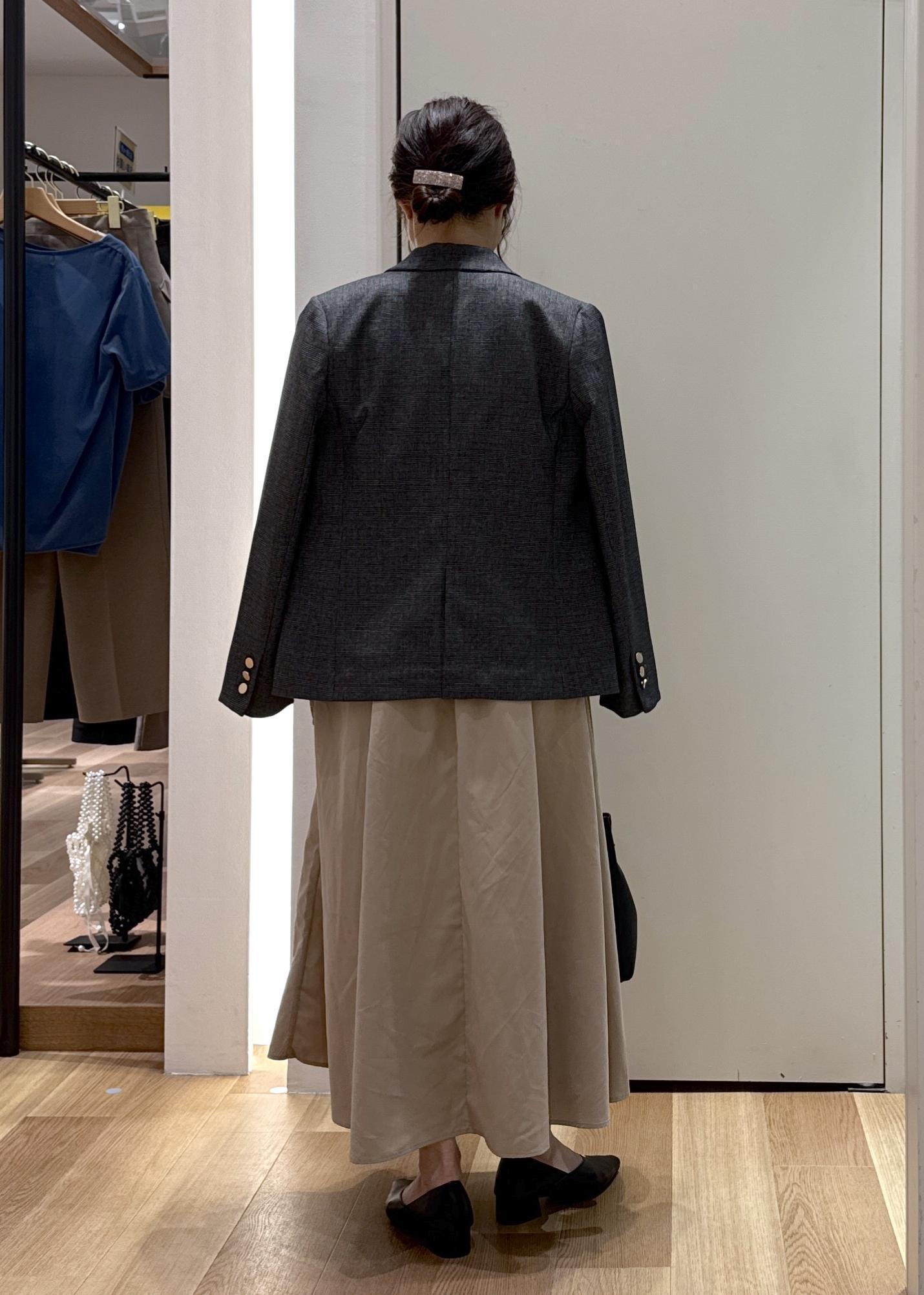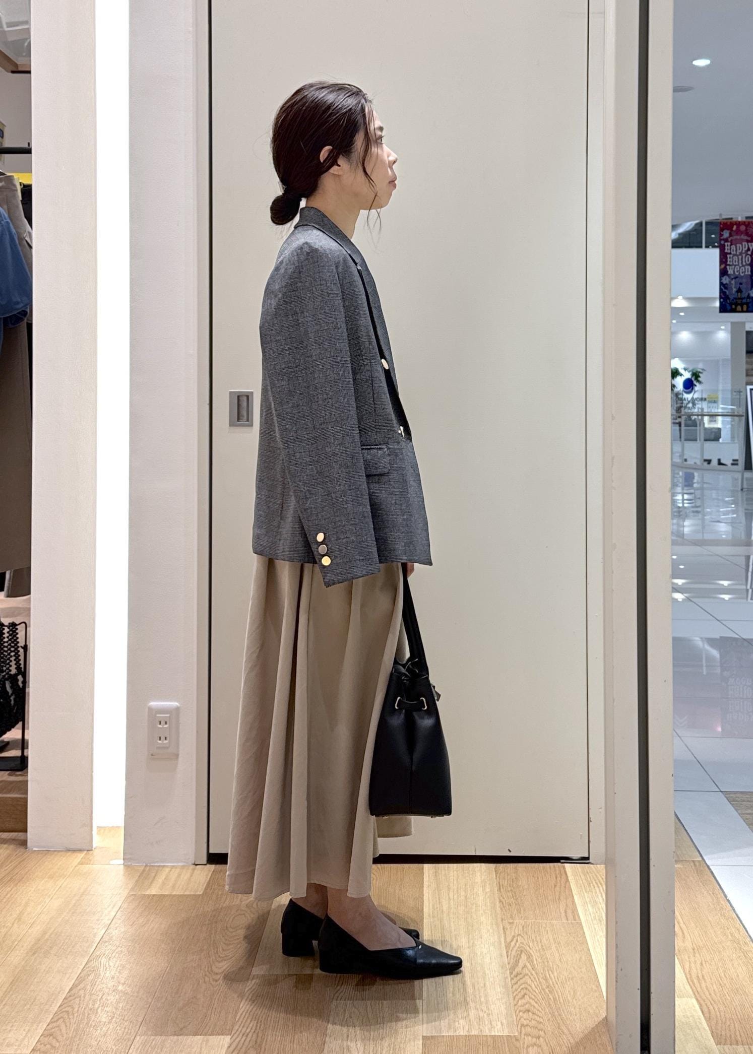 ワンピースが甘めなフレアシルエットなので、羽織りはジャケットで大人っぽい印象にしてみました♪