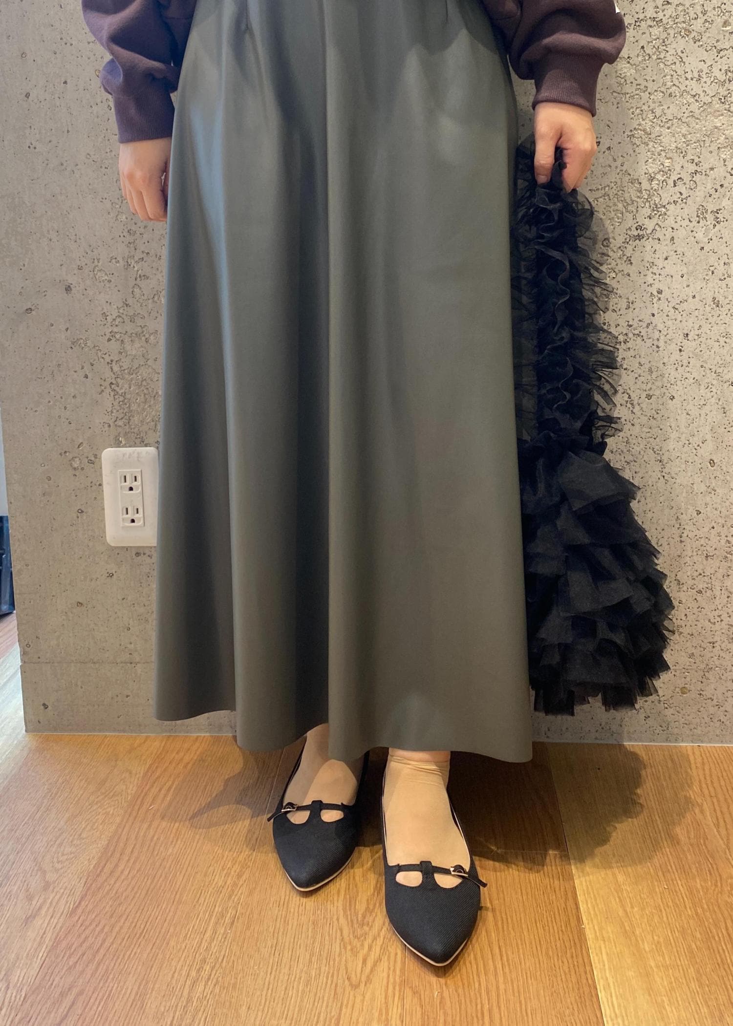 ROPÉ PICNICシンセティックレザーフレアロングスカートカーキ / S¥4,994レビュー私の身長で、丈がくるぶしより少し上の長さです。落ち感のあるシルエットですので小柄さんでも重たくみえにくいです。