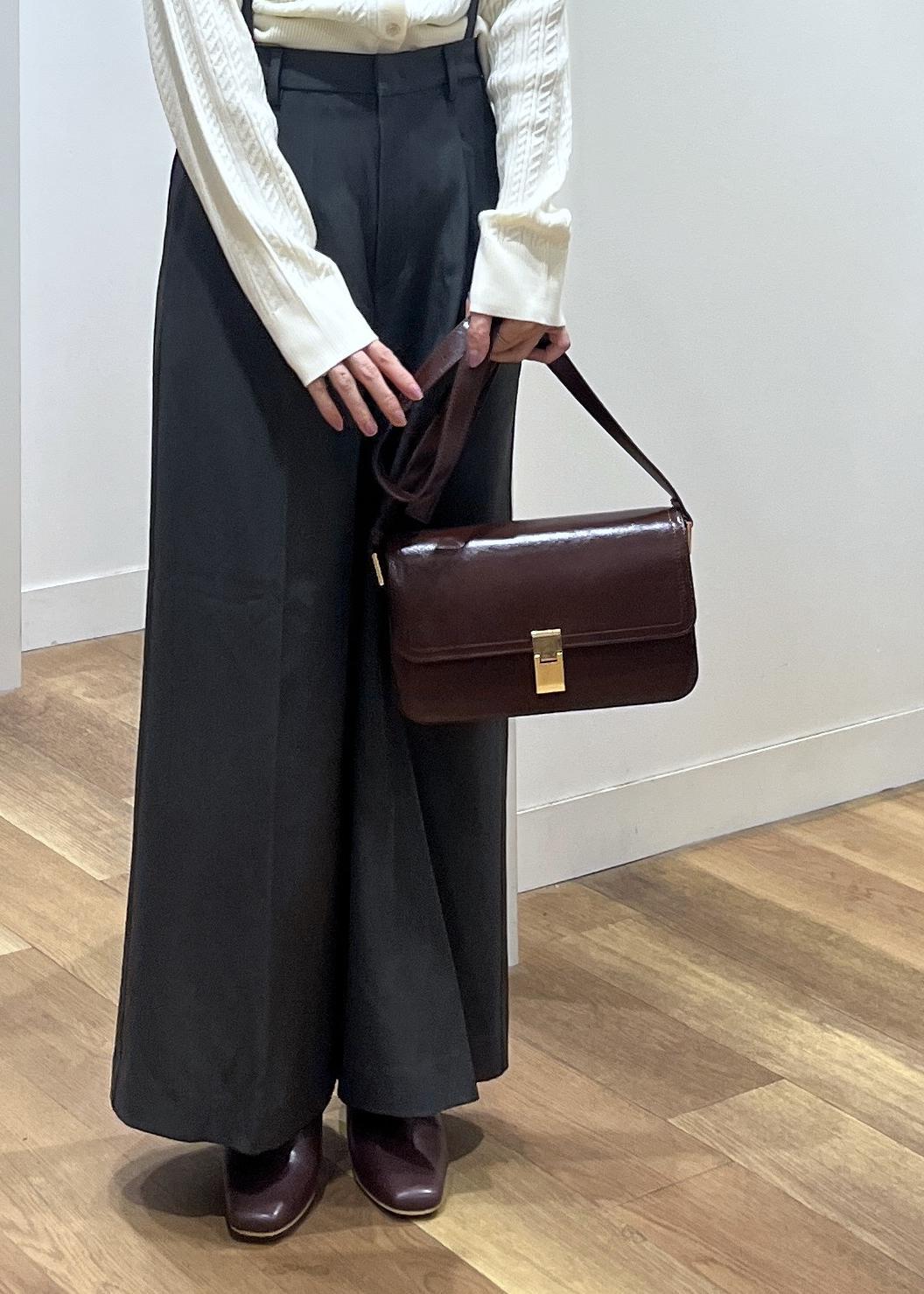 かっちりとした横長フォルムのバッグです。
