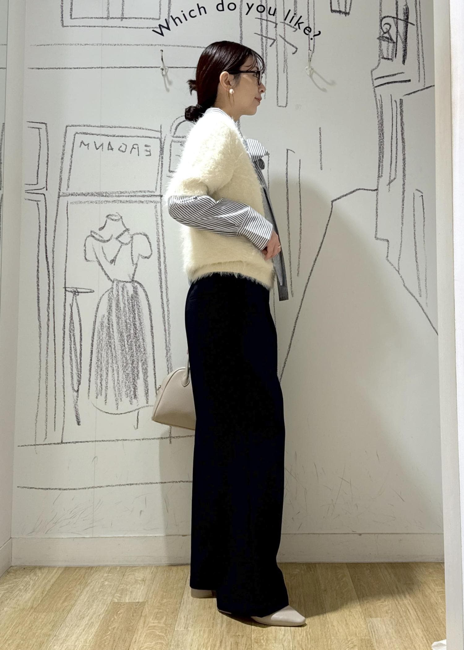 ROPÉ PICNICレディハンサムシリーズ ウールライクウエストタックセミワイドパンツ/セットアップ対応ネイビー / M¥5,489レビュー前回も人気だったパンツが再登場♪センタープレスやハリのある生地感は美シルエットと高見えを両立してくれます。162㎝でローヒールと合わせると丁度いいバランスで履けました。