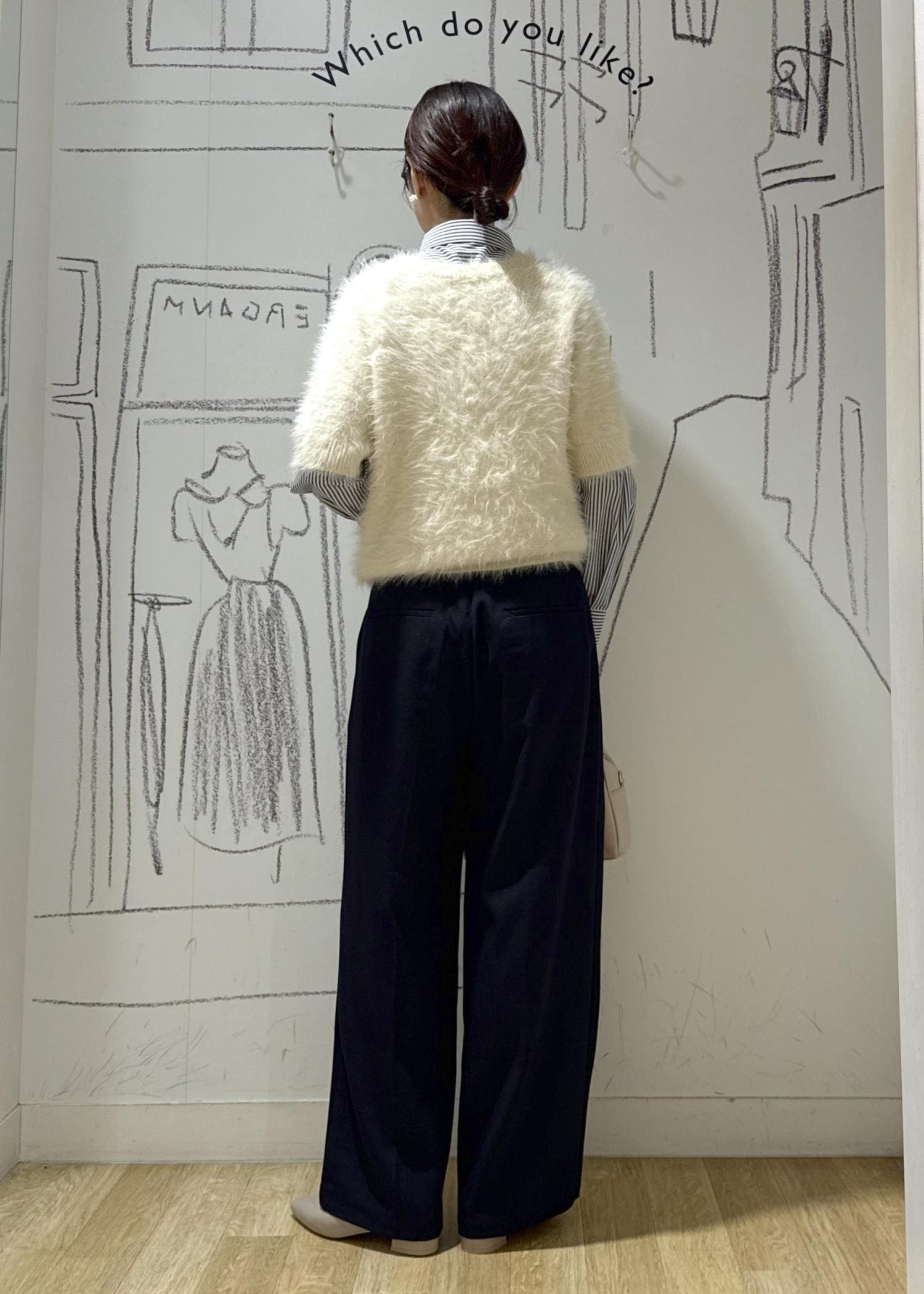 ROPÉ PICNICシャギーニットハーフスリーブプルオーバーキナリ / F¥3,993レビュー毛足の長いニットで肌あたりはふわふわ柔らかくチクチク感は気になりません。袖は二の腕が隠れる5分袖。着丈は腰が隠れるくらいの長さでボトムス選ばず合わせやすいバランス。