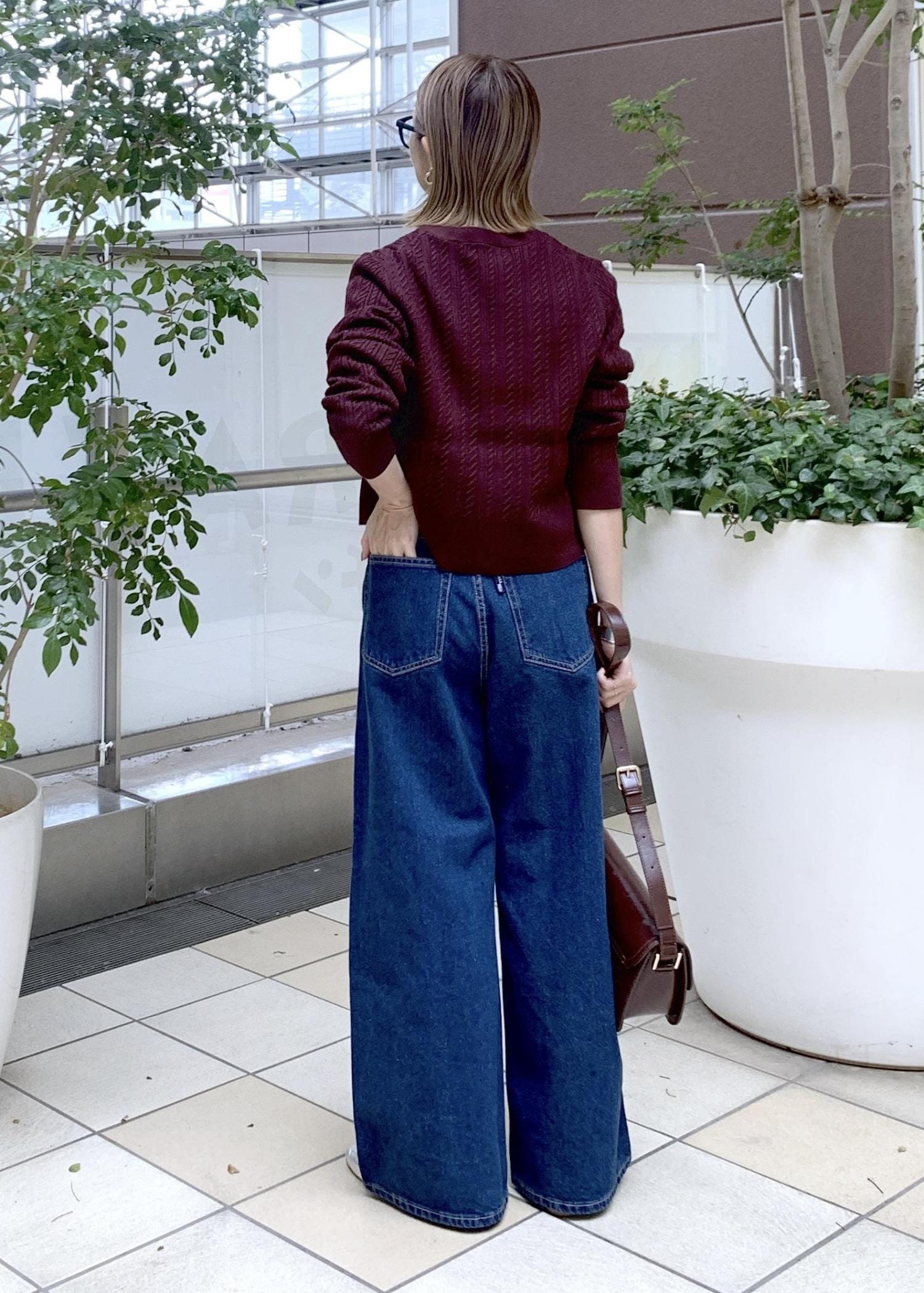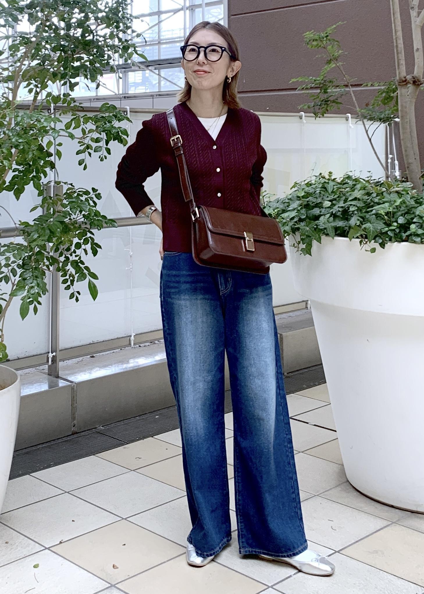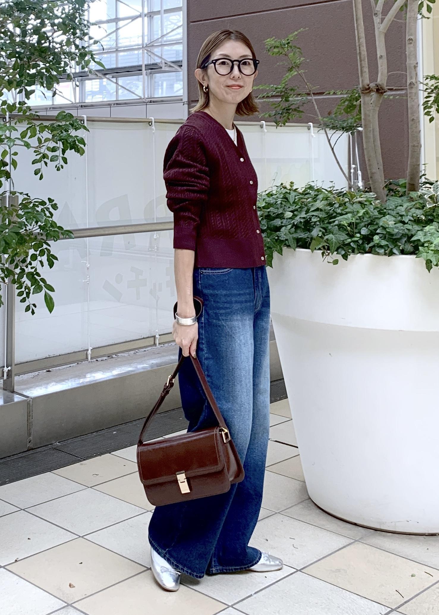 秋口にちょうど良く着られるミニケーブルカーディガン。