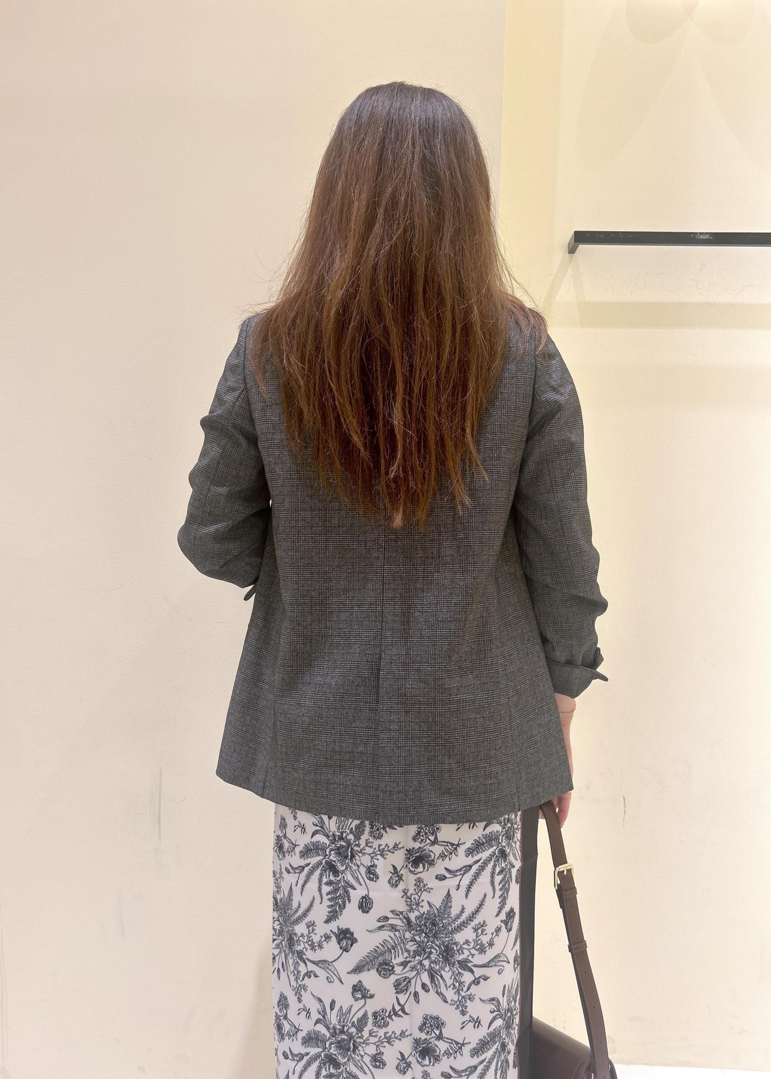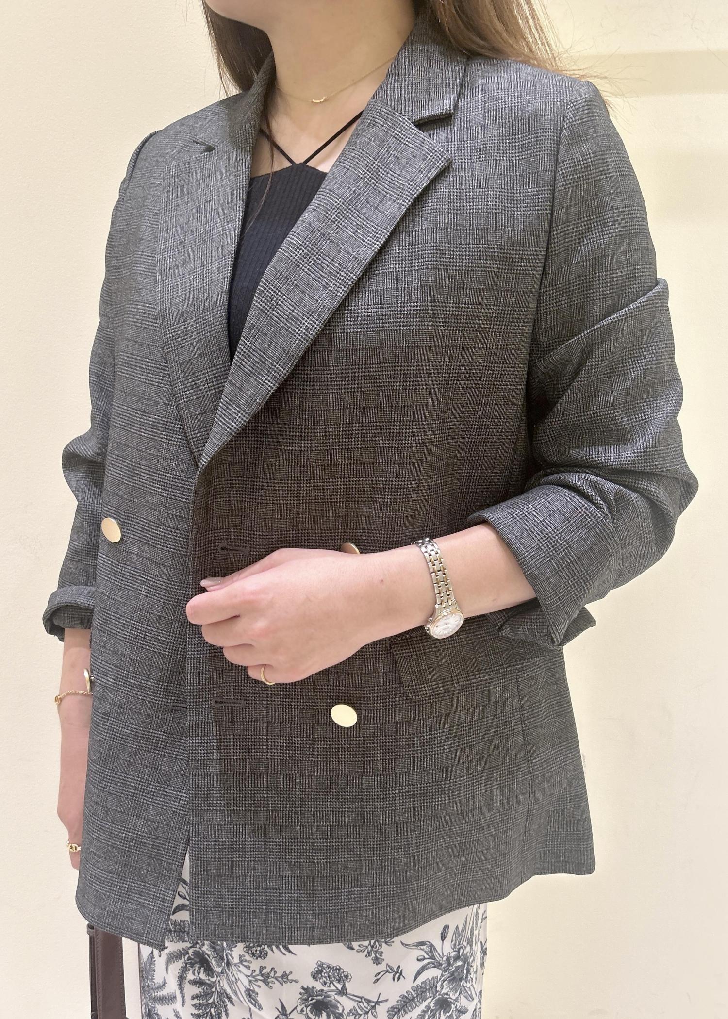 着丈の選べるチェック柄ジャケットのレイヤードコーデ