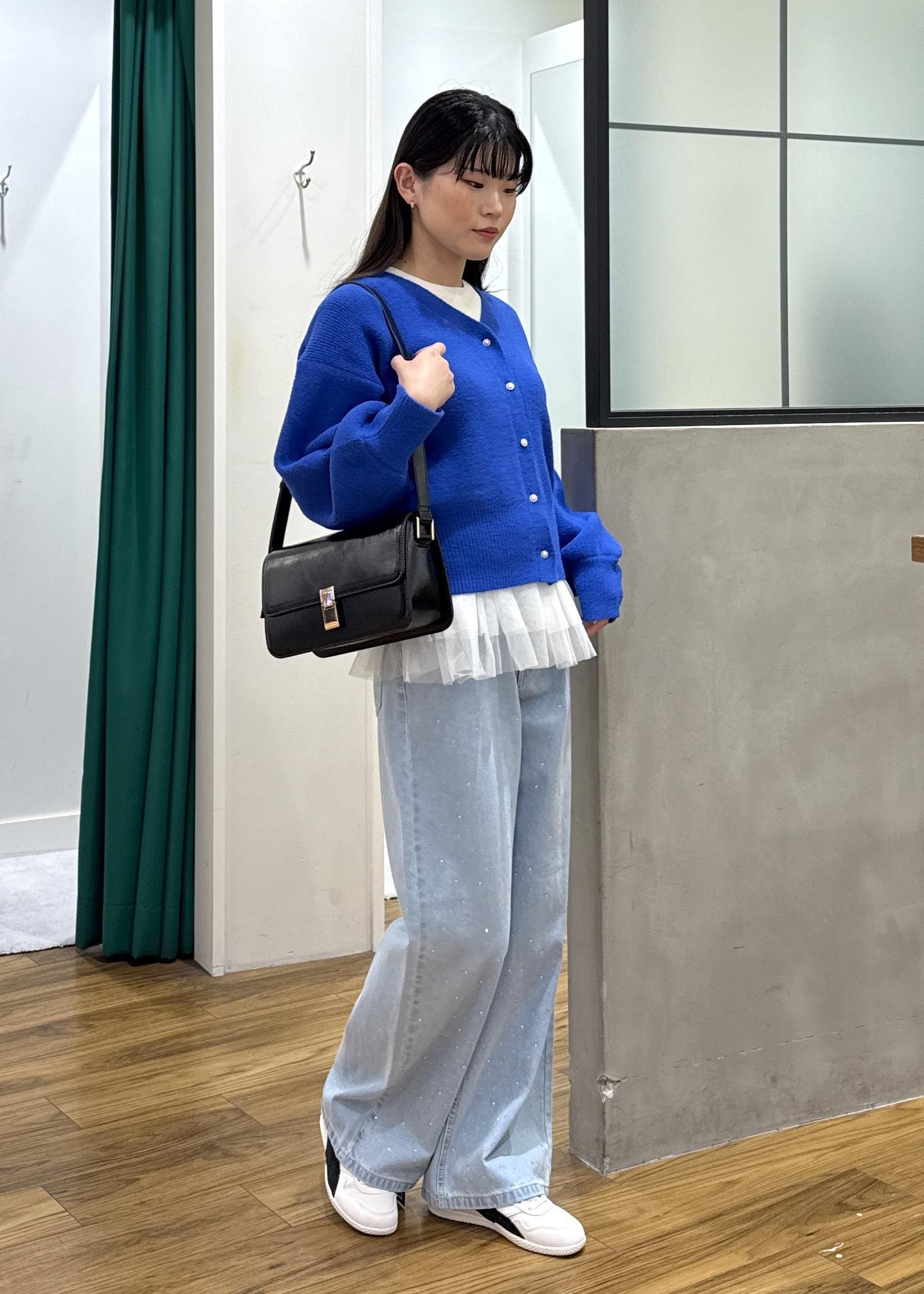 暗めになりがちな冬のコーディネートを、冬をイメージできるブルーで明るいコーディネートしてみました。