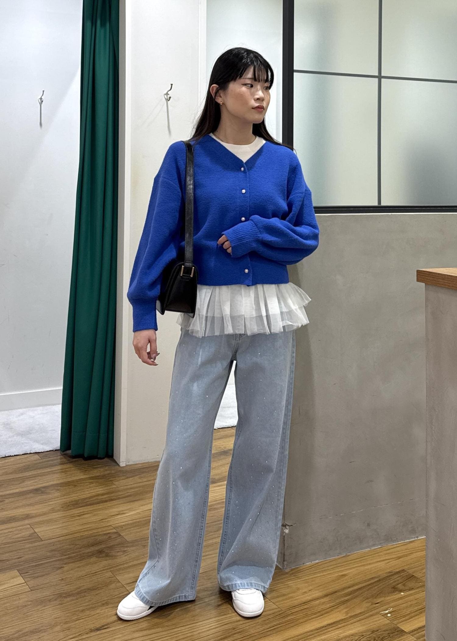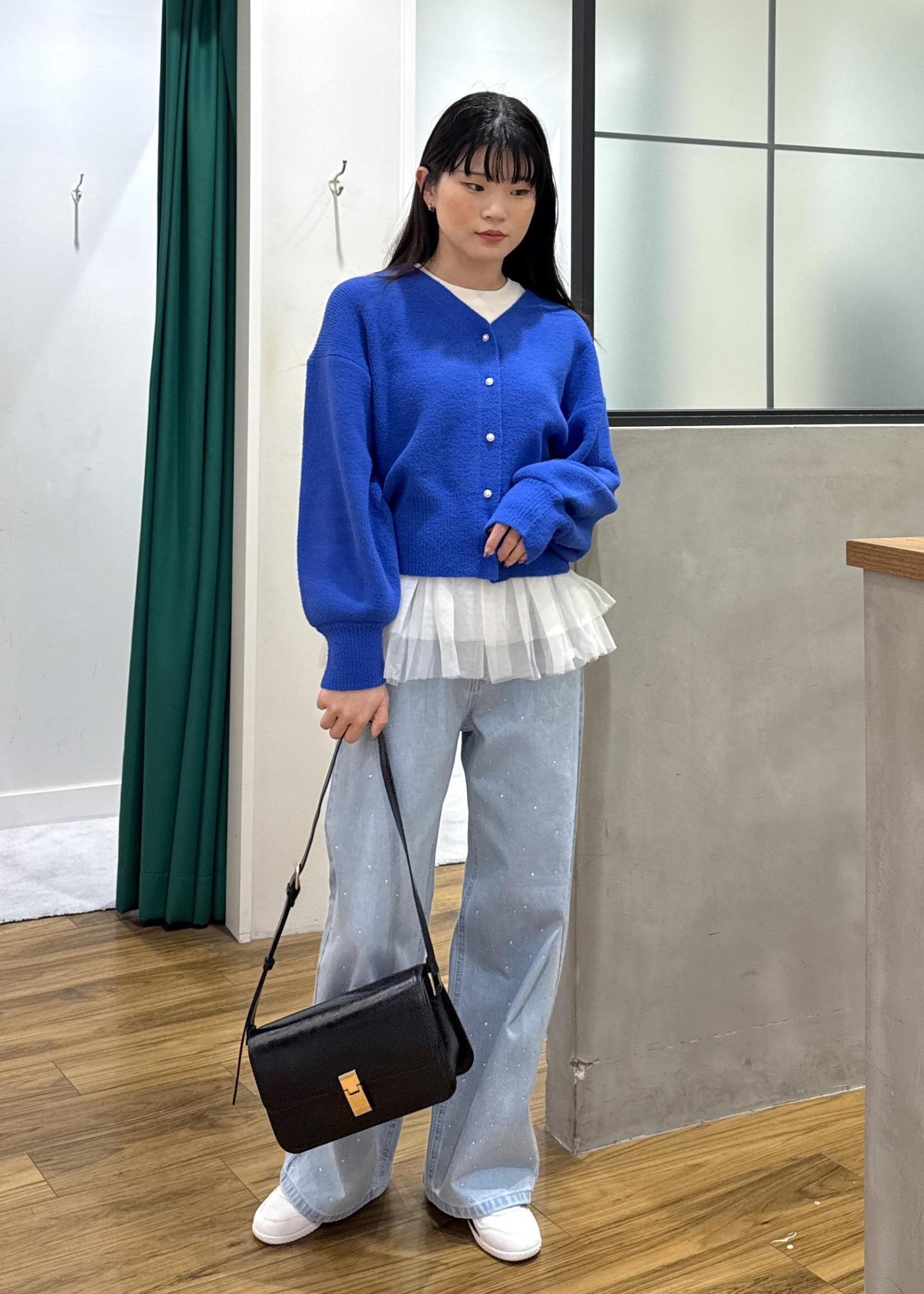ショート丈なので、スカート合わせやレイヤードなどコーディネートの幅が広いです。 -