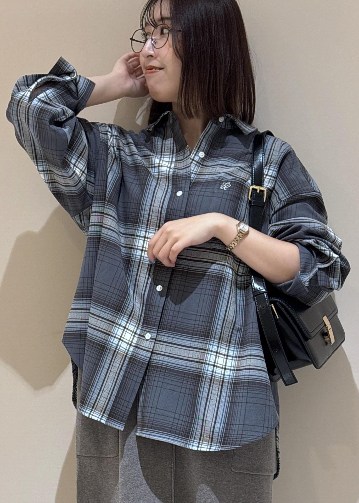 敢えてニットジャンスカと同系色のチェックシャツを合わせるのが統一感が出て、オシャレ見えします。