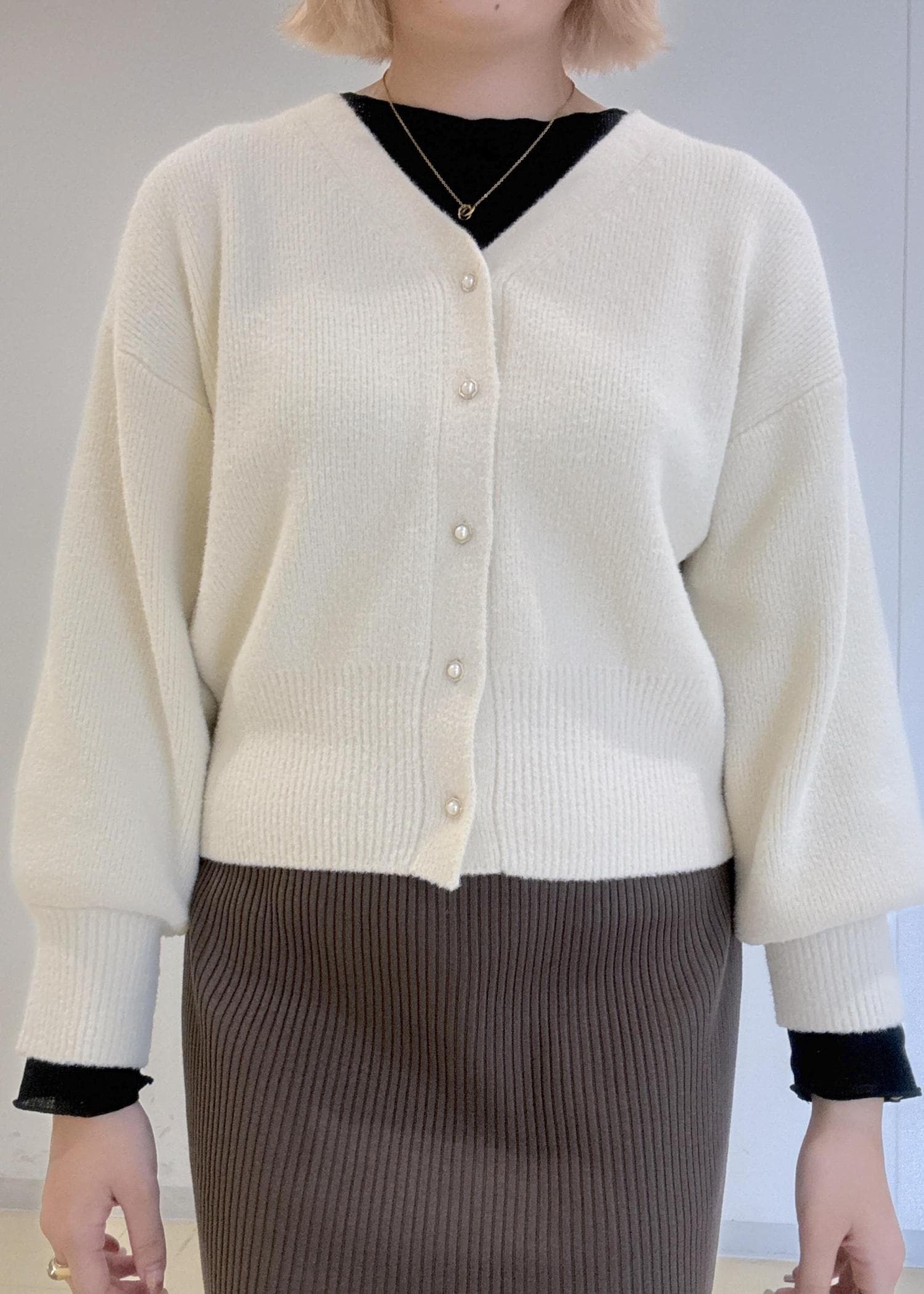 もちもちの素材が気持ちいい、カーディガンを使った秋コーデです!
