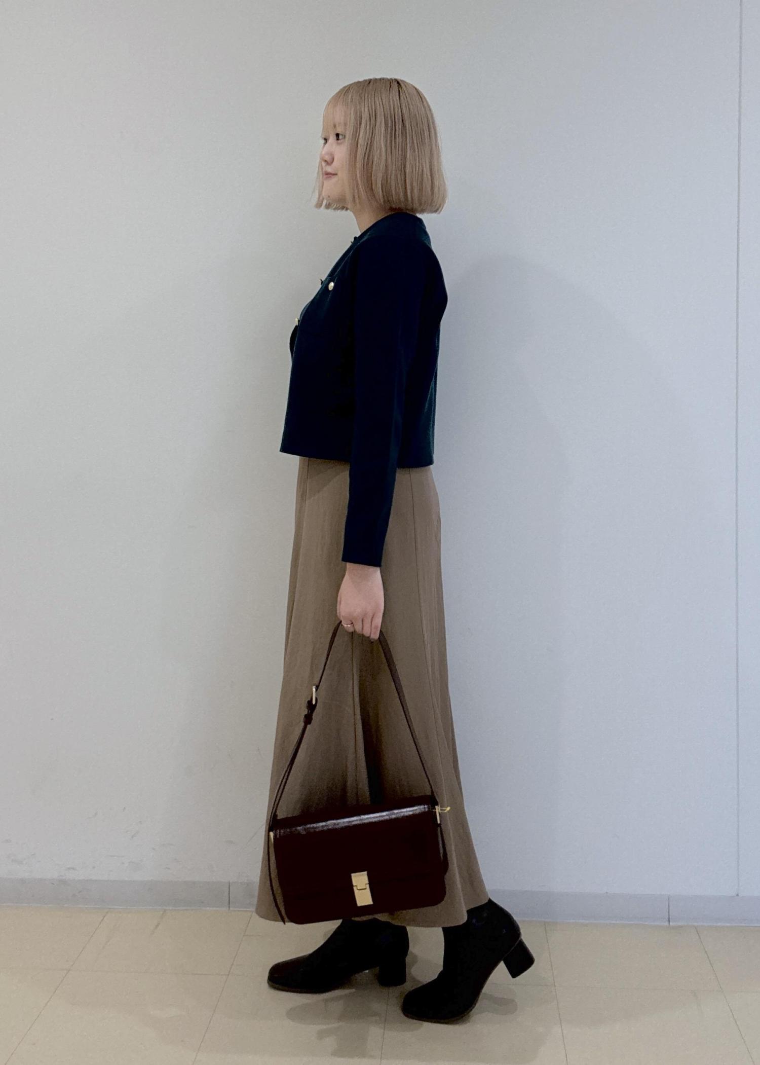 ミラノリブカーディガンとスクエアバッグを使ったクラシカルなコーディネート♡