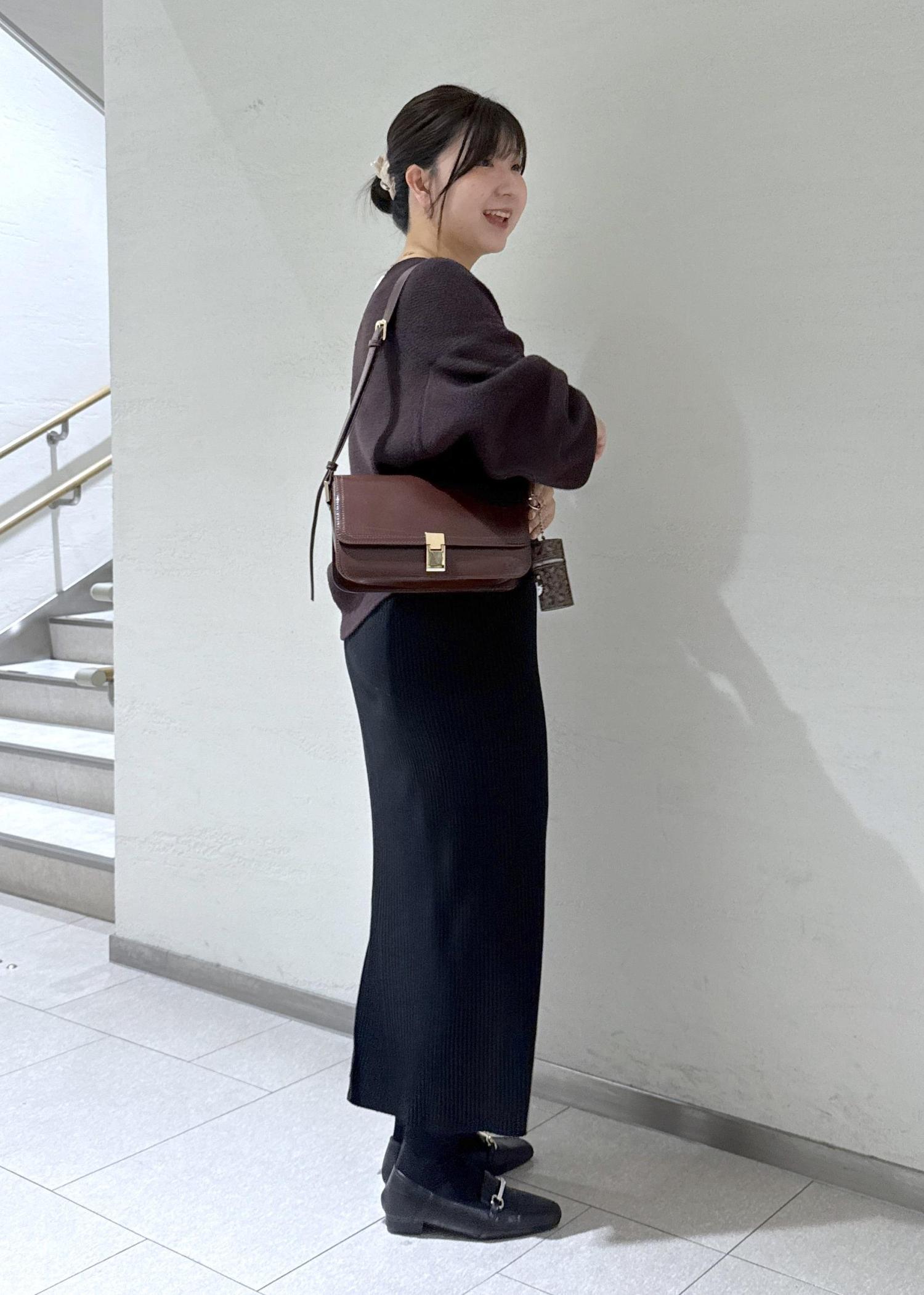 アクセサリーは華奢目なネックレスで、ヘアスタイルもアップした方がダークカラーコーデの時は可愛く見えます!