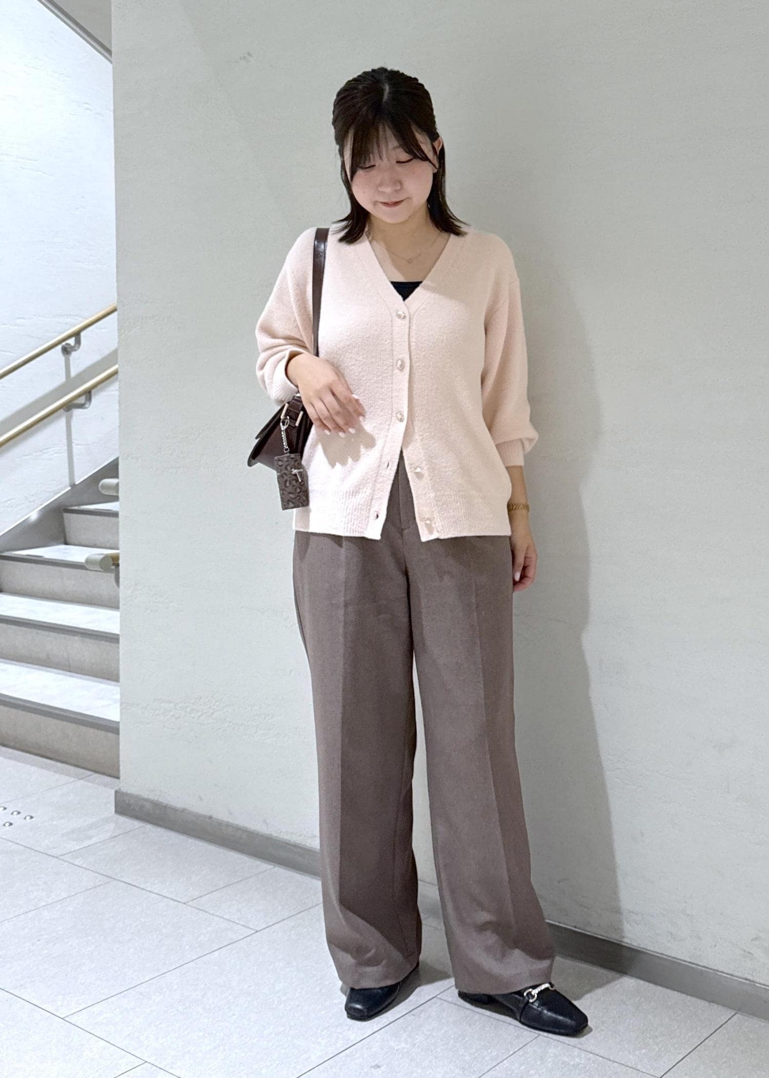 カーディガン×ワイドパンツのシンプルなコーデですが、こだわりポイントが2つ♡