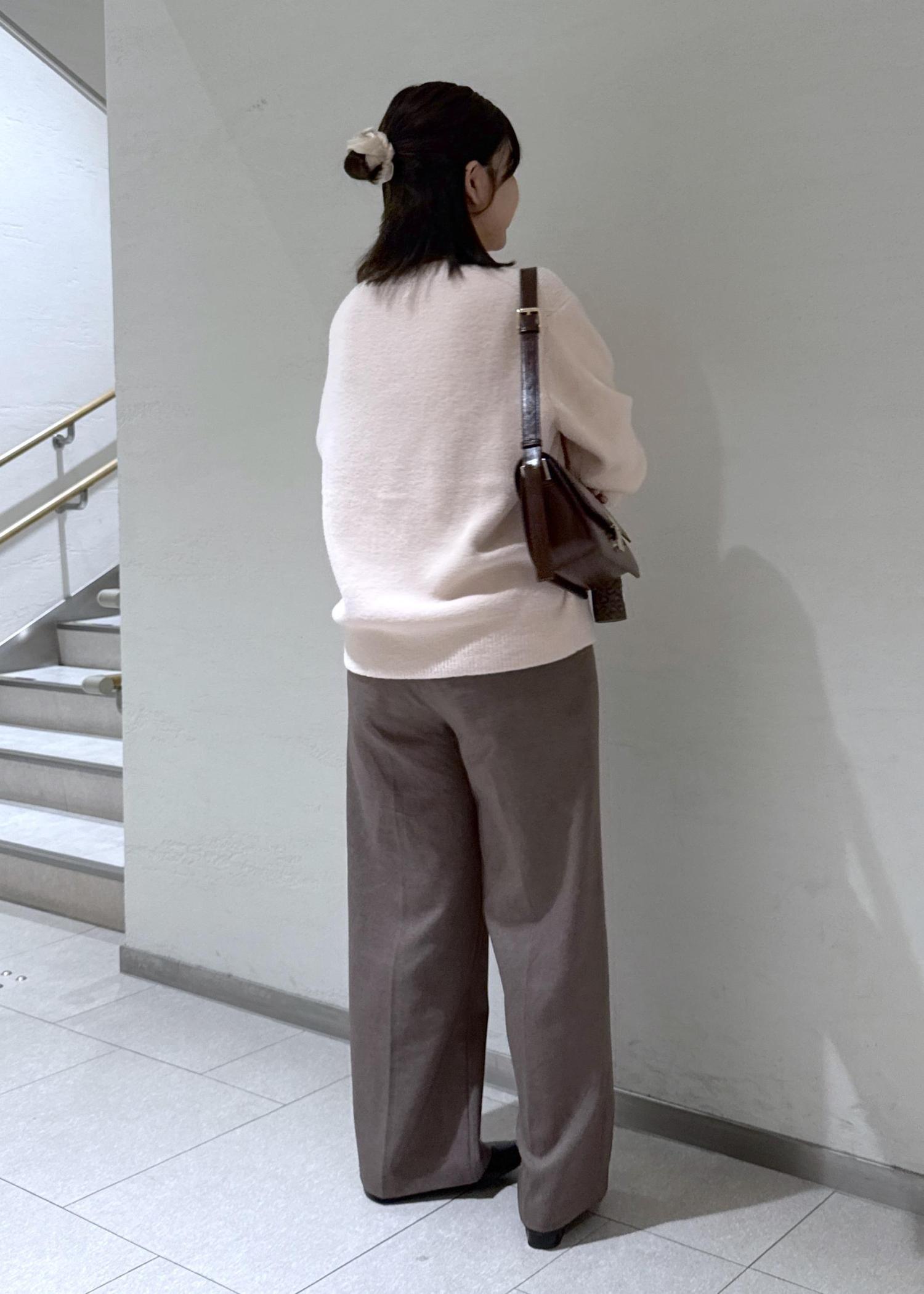 今まで丈がジャストより少し短く感じていたので、余計に下半身が太く見えてしまうのが悩みでしたが、ズルっと着れる丈感で脚が長く見せれます。