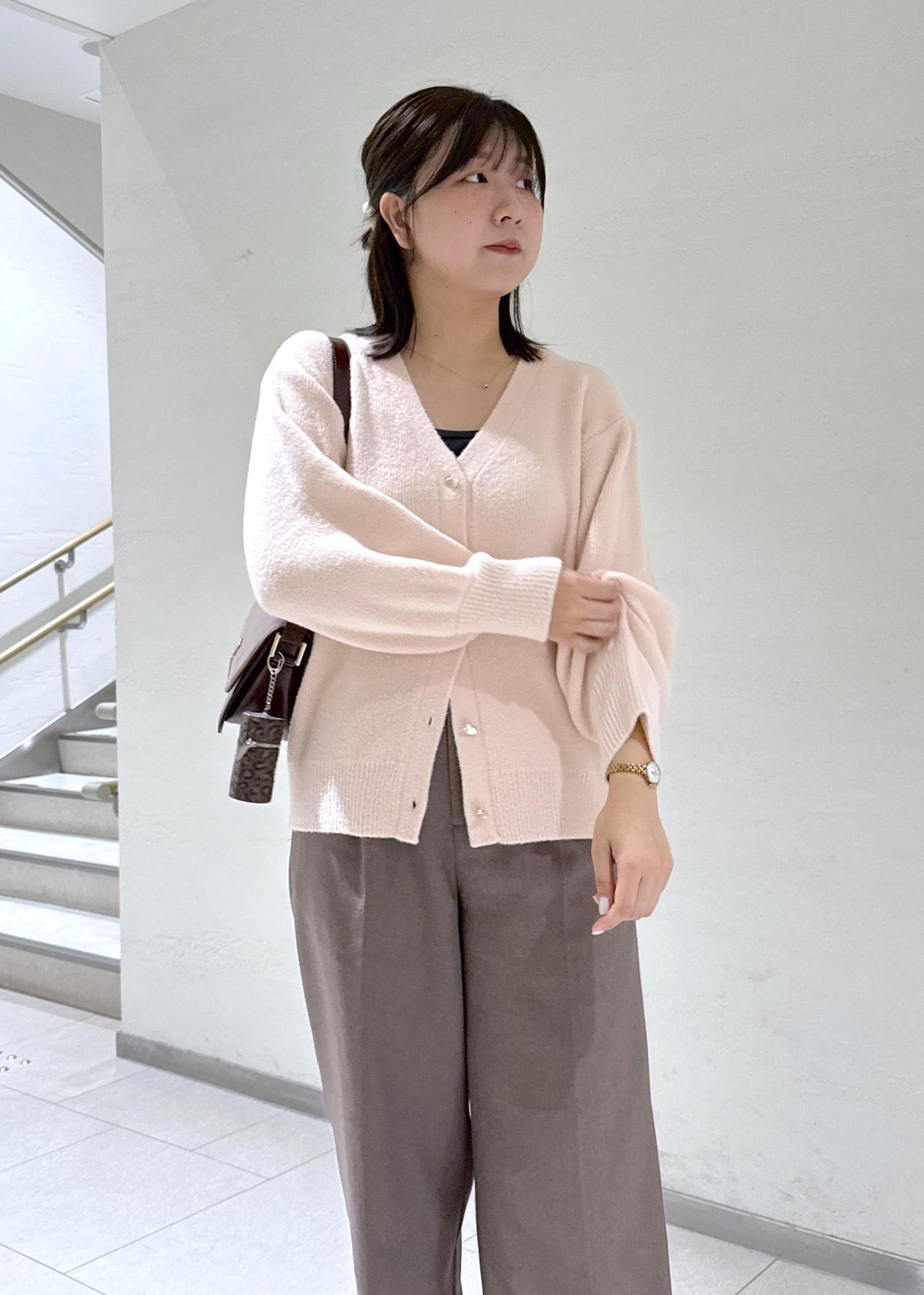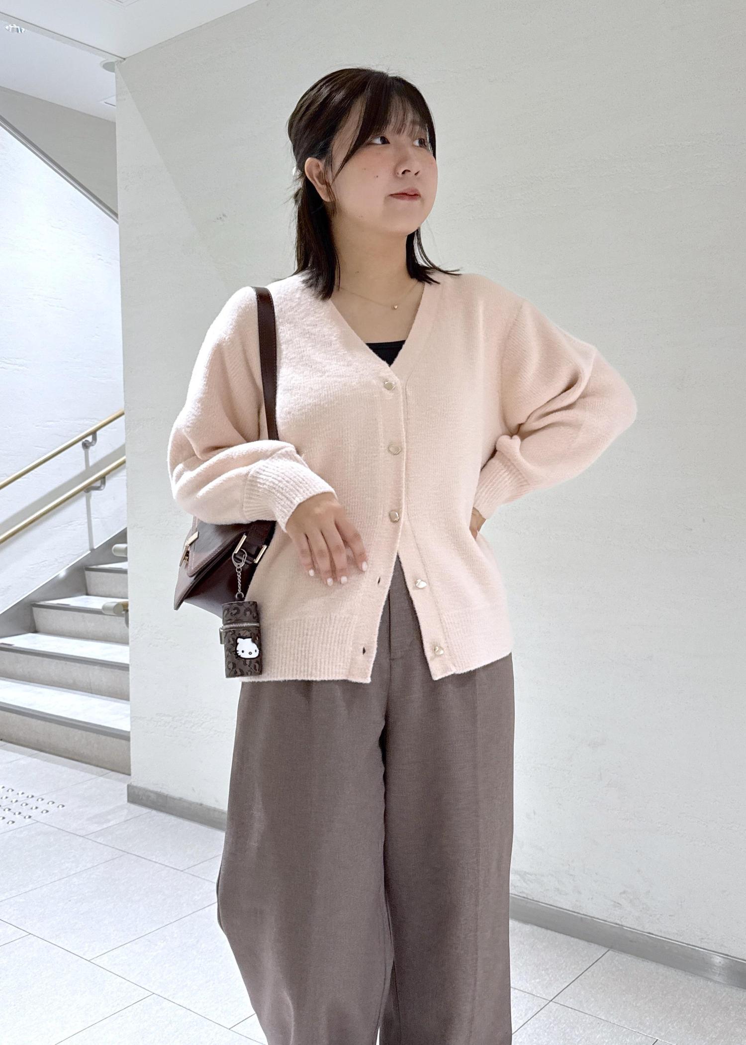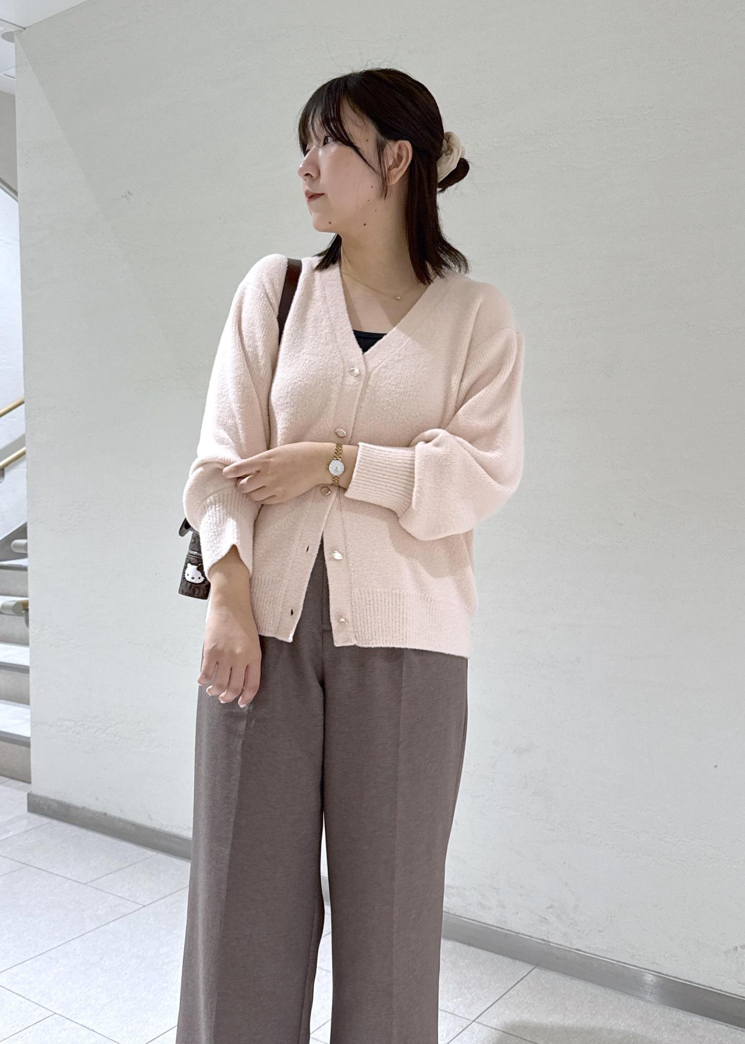②カーディガンのボタンを外して抜け感を