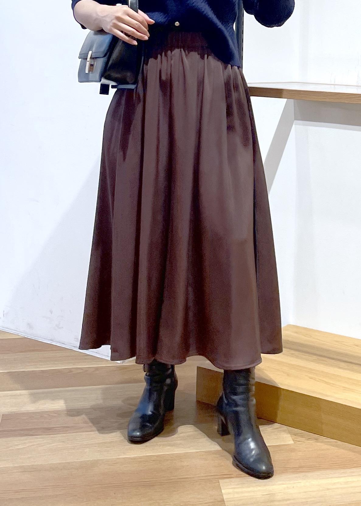 大人気のスカーチョです。秋冬の落ち着いた深みのあるカラーです。低身長の私には丈の長さが選べるのでとっても嬉しいです○光沢感がありキレイめスタイルでも○