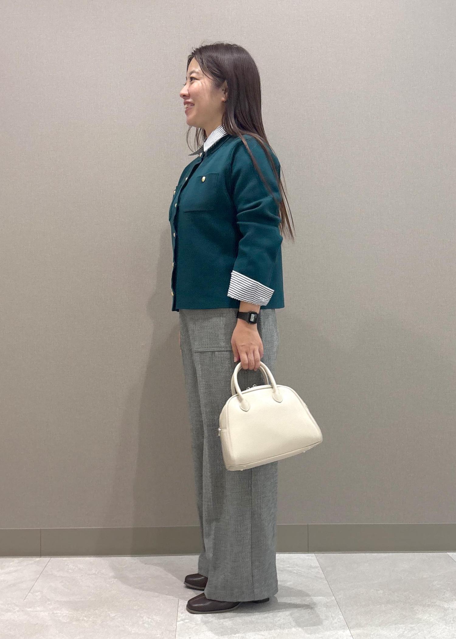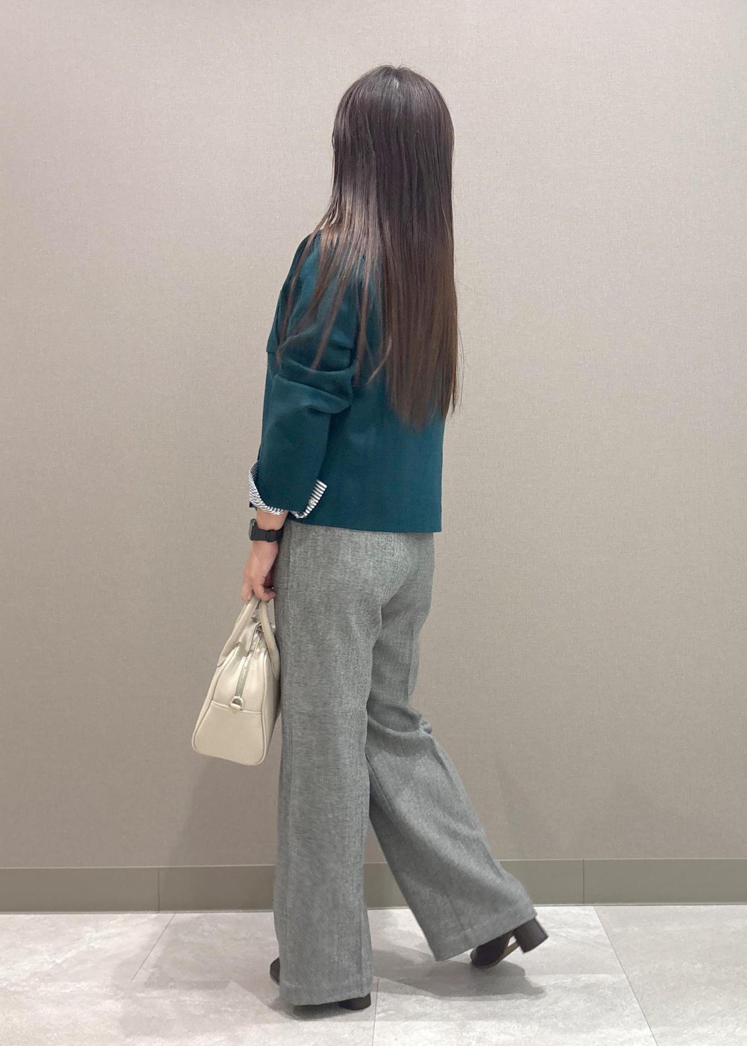 155cmでMサイズ着用だと少し長めなので、ヒールで合わせてあげるといいです! -