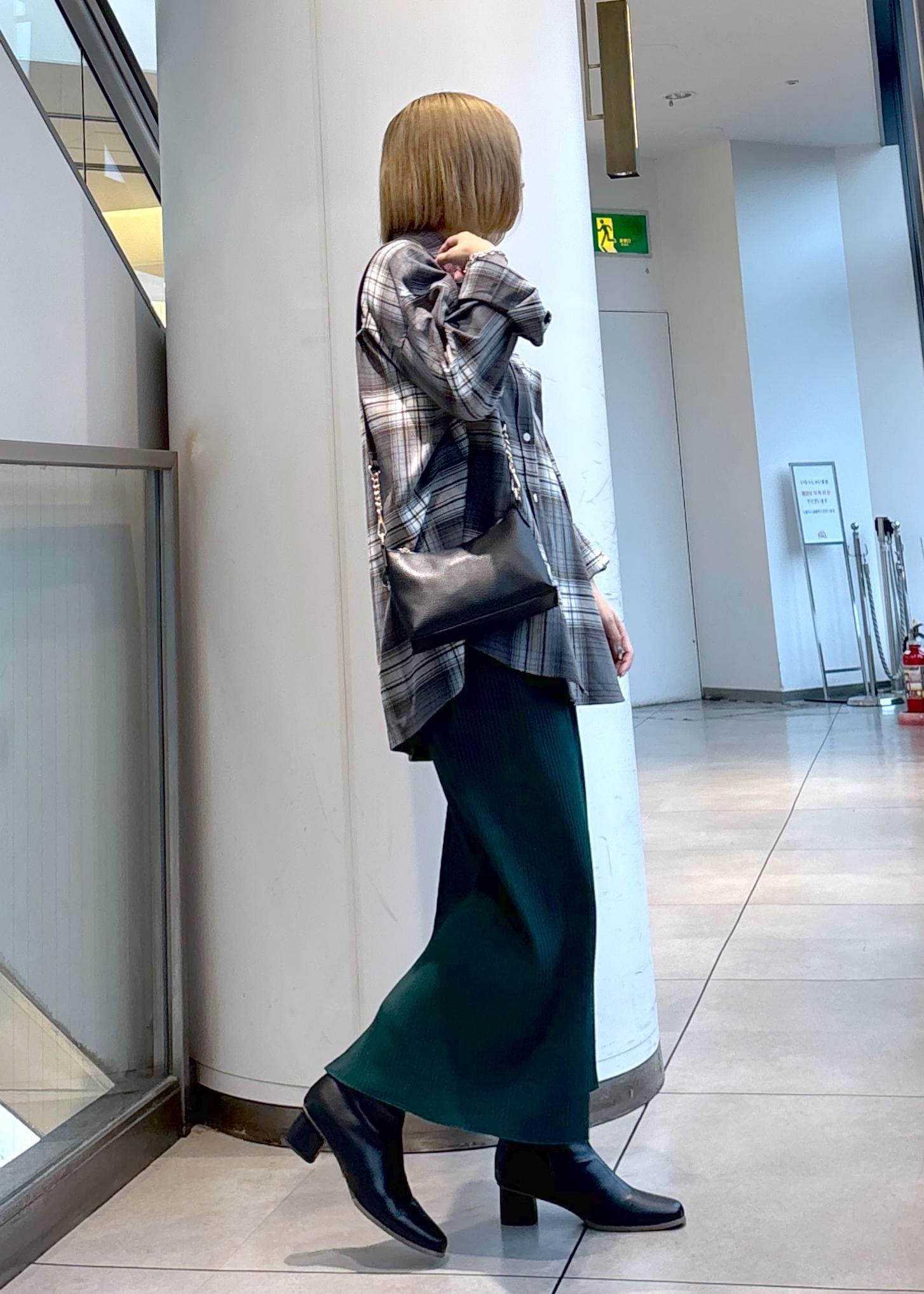 こちらのスカートは、Iラインすぎない程よいシルエットと丈感が、ブーツとも相性が良くてお気に入りです☺︎