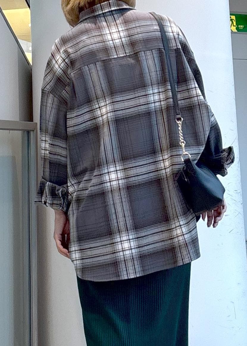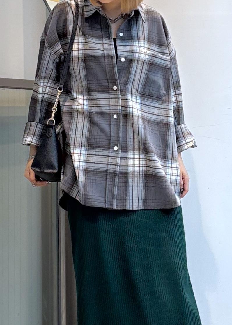 人気のチェックシャツはやや厚みがあり、一枚でも羽織でも使いやすいので、この秋重宝しそうです◎