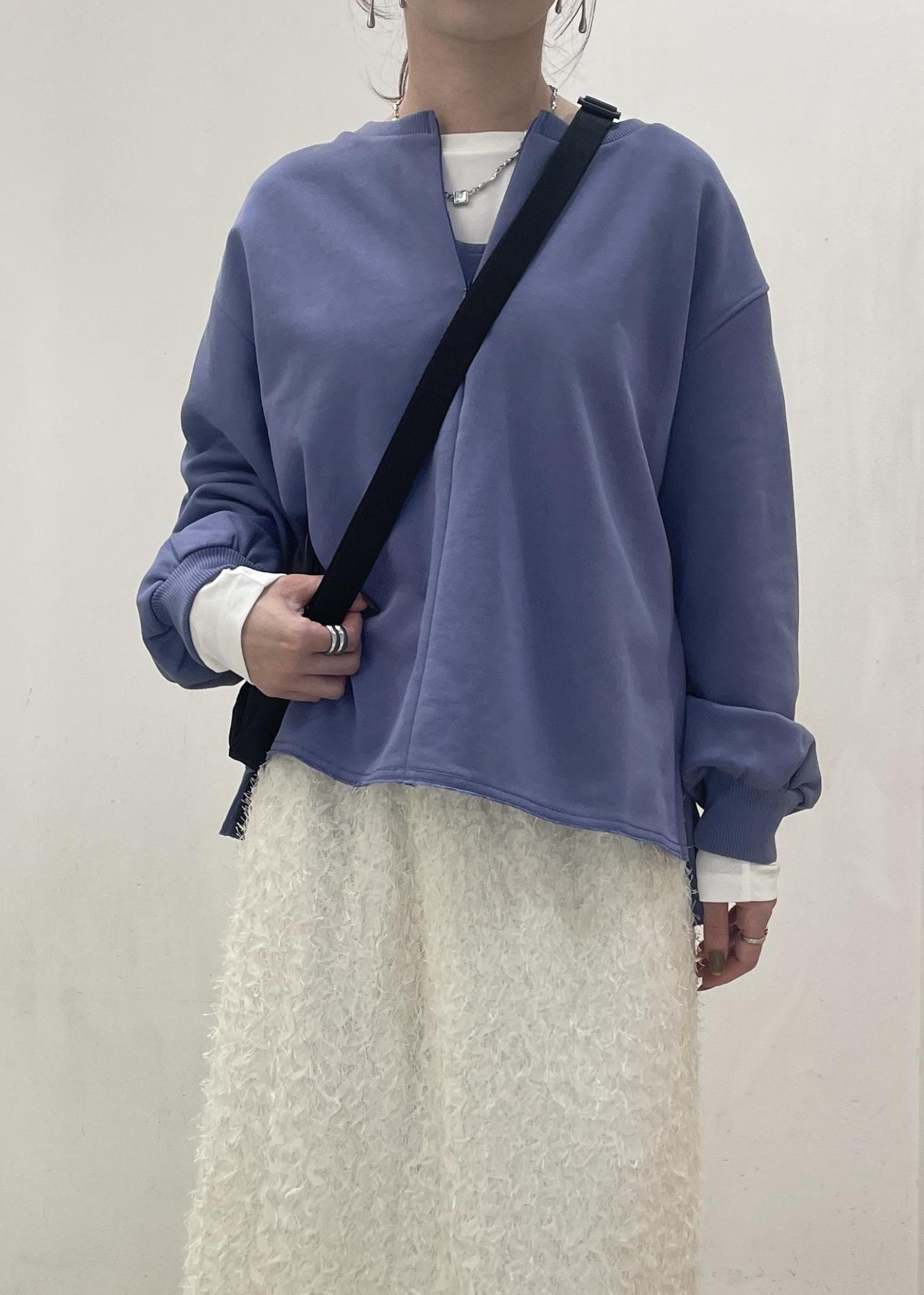 ROPÉ PICNICスキッパー裏毛プルオーバーブルー / F¥3,993レビュー程よくゆとりのあるサイズ感で、ファスナーは開け閉め可能なので印象を変えて着用していただけます。