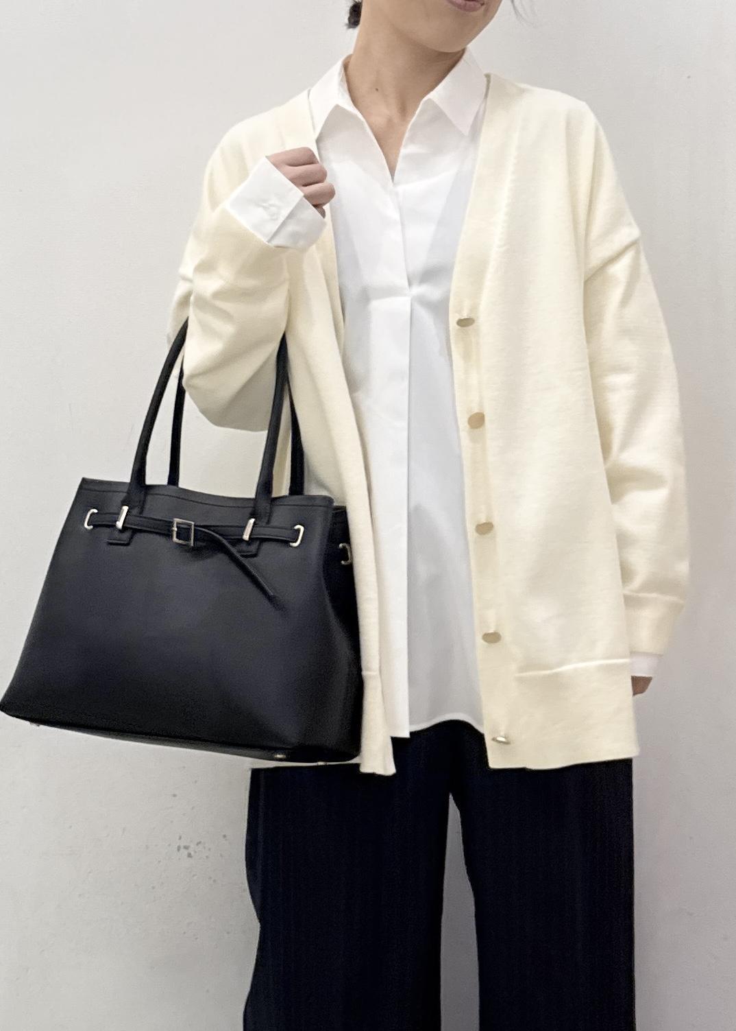 お仕事にもお出かけにも使いやすい大きさの、シンプルデザインのバッグ。