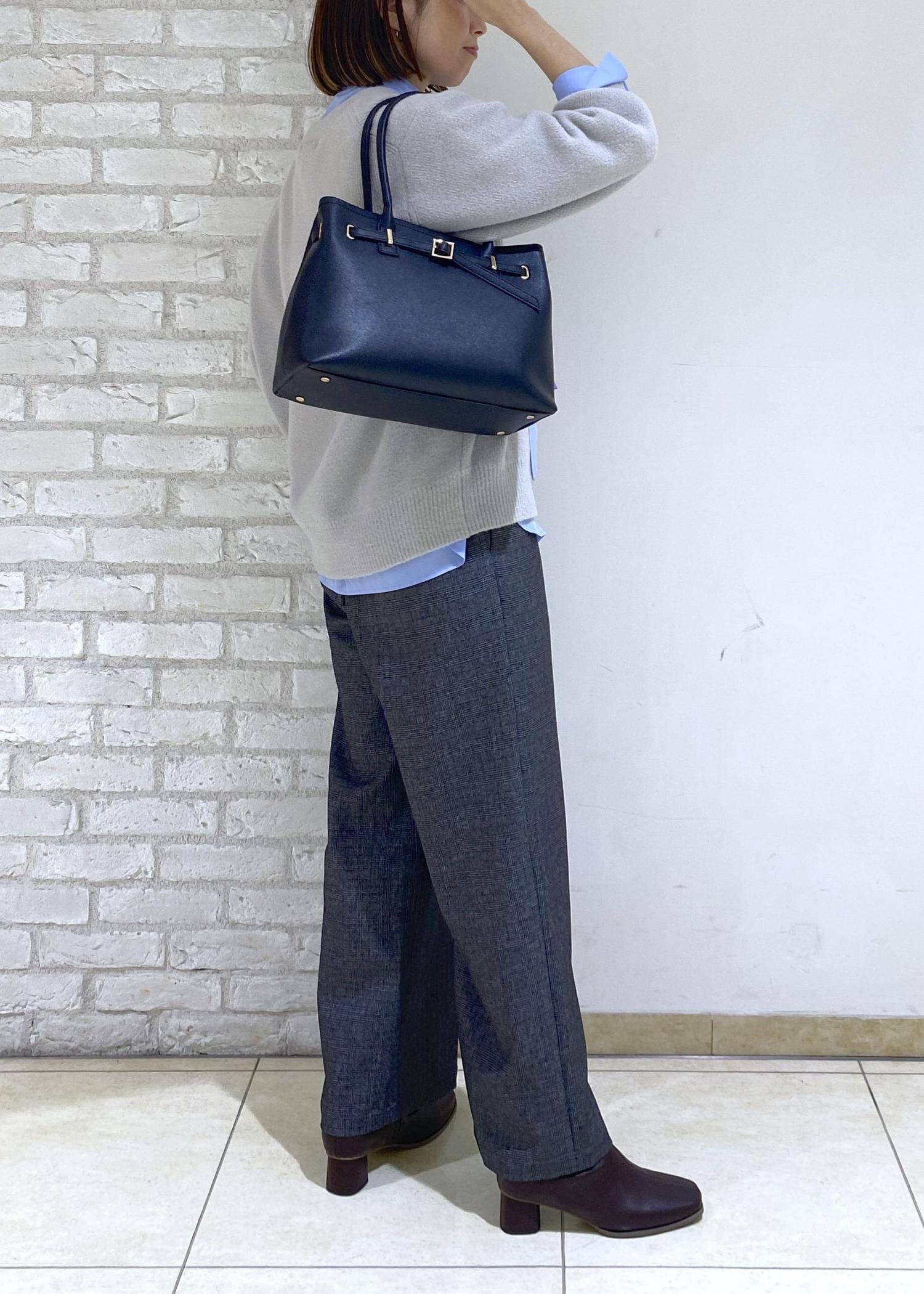 持ち手部分の長さがあり、厚手のニットを着ても肩に掛けやすかったです。