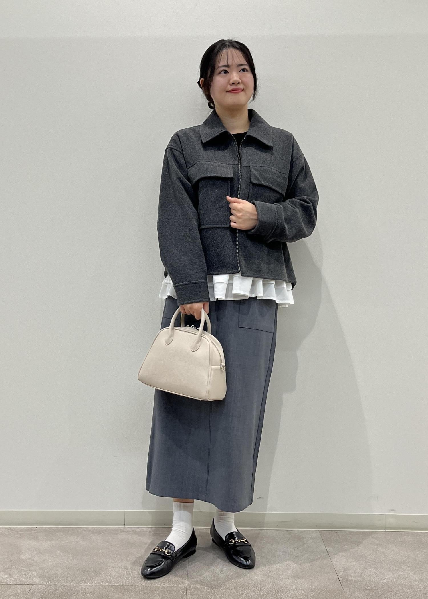 ROPÉ PICNICジャージーメルトンシリーズ ポケット付きジップブルゾン/リンクコーデチャコール / F¥7,999レビューゆとりのあるサイズ感です。