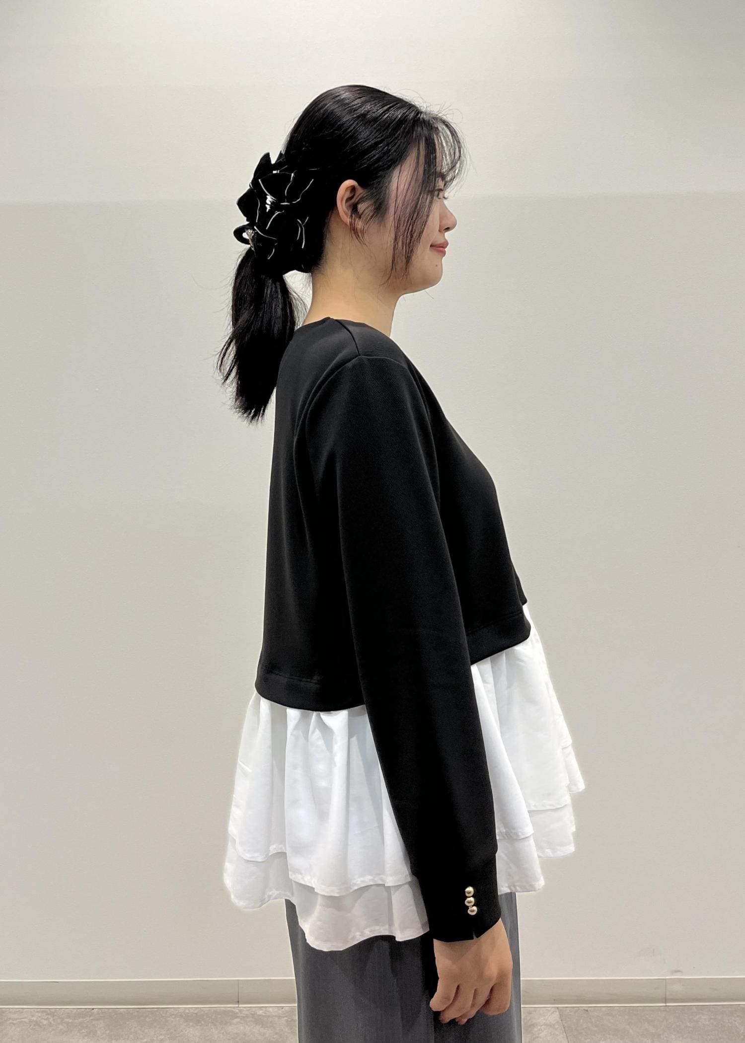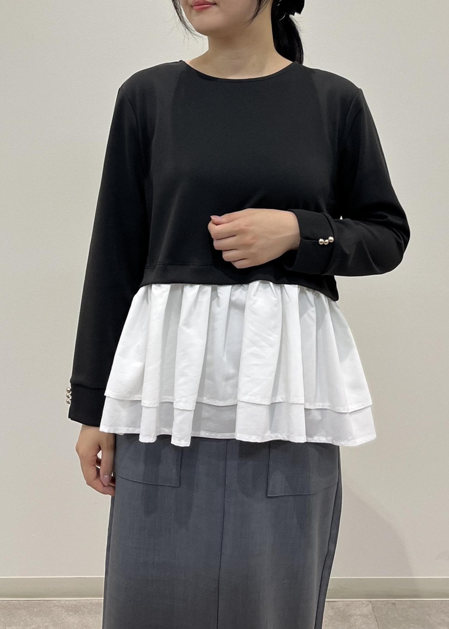 ROPÉ PICNIC布帛ドッキングペプラムギャザープルオーバーブラック / M¥3,842レビュー身幅にほどよくゆとりがあります。