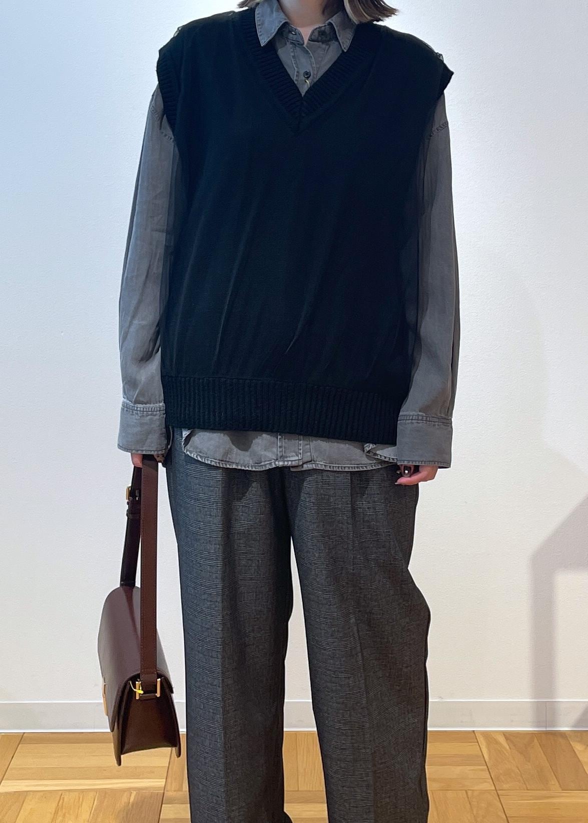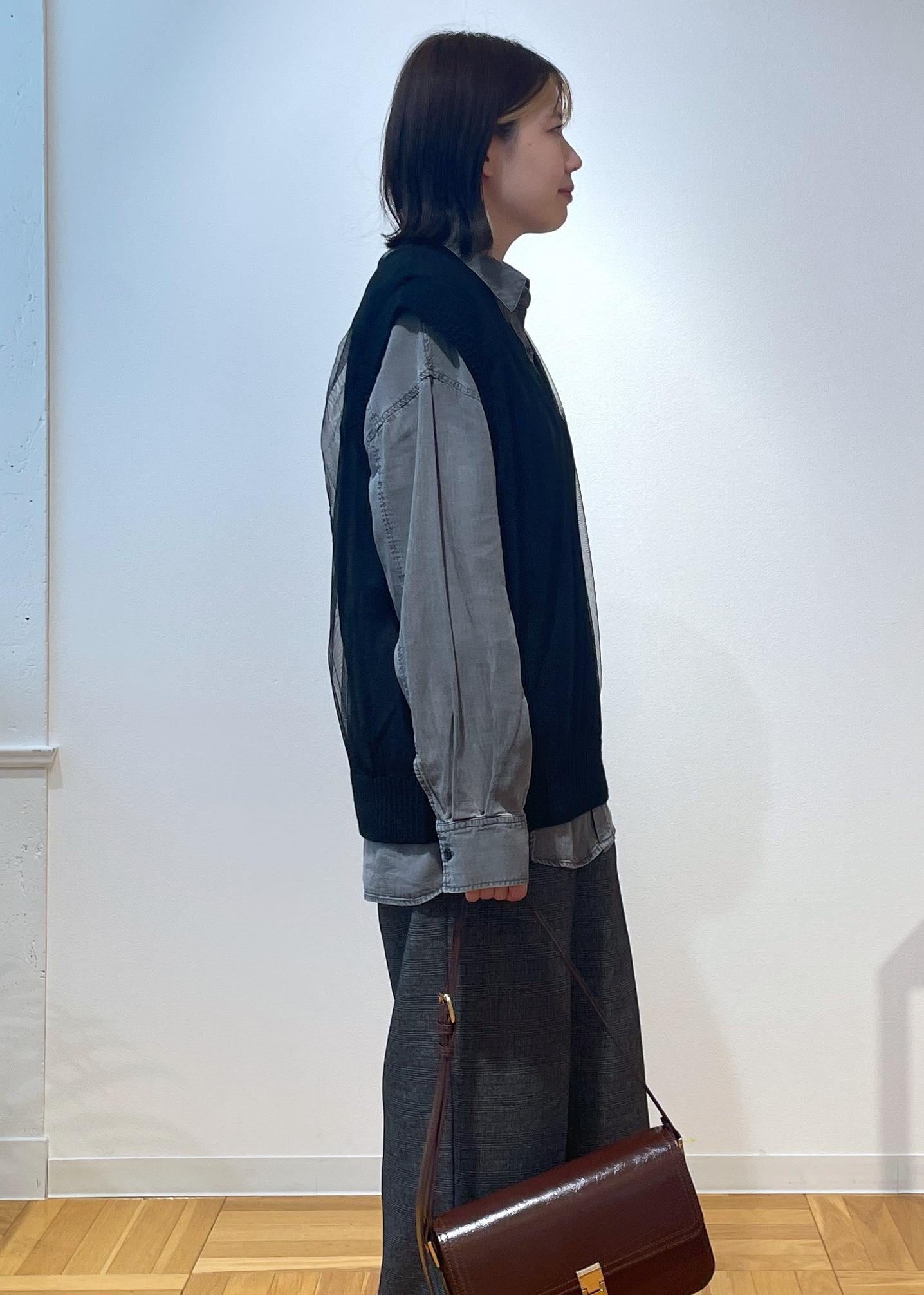 デニムシャツ×チュール付ベストの素材感がカッコいいとカワイイ!が混じっておすすめです◎