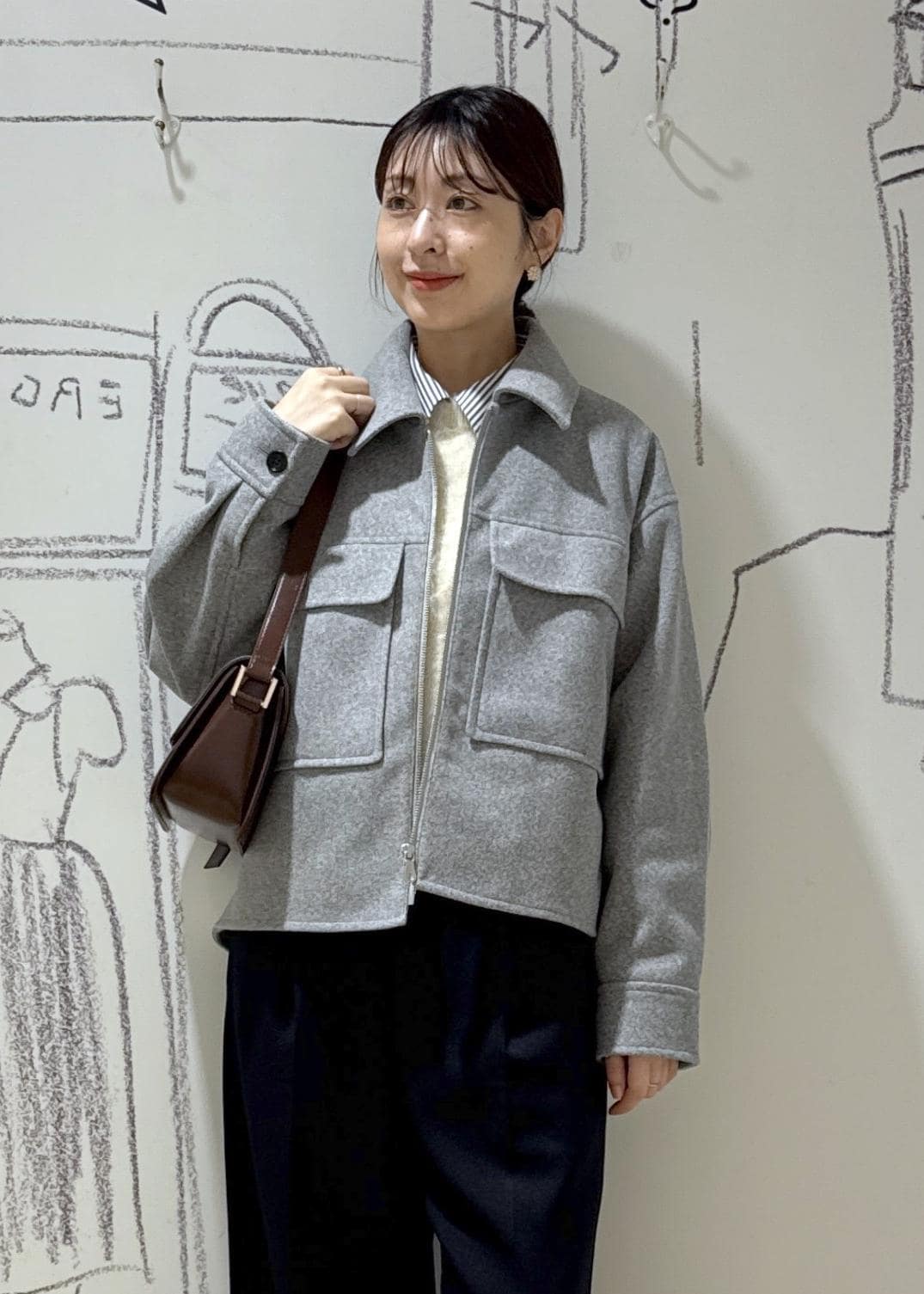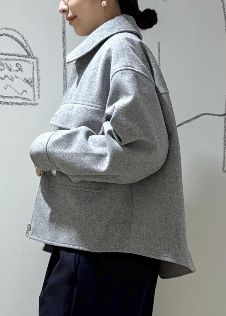 ROPÉ PICNICジャージーメルトンシリーズ ポケット付きジップブルゾン/リンクコーデライトグレー /¥9,999レビュー冬にも対応してくれる厚みです。中肉程度のニットなら問題なく羽織れるサイズ感。着丈は腰が隠れる長さ。襟付きなのでスタイリッシュな雰囲気を作れます。