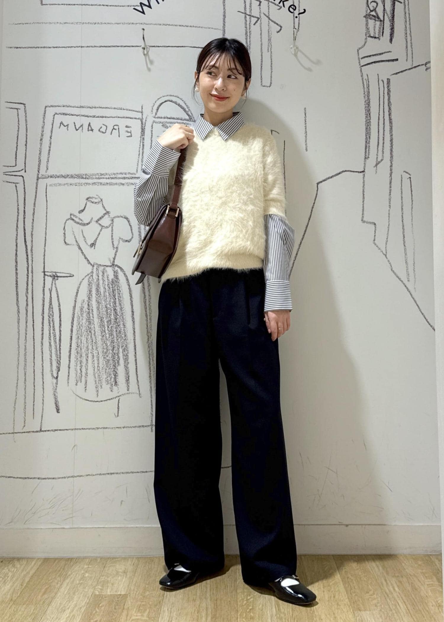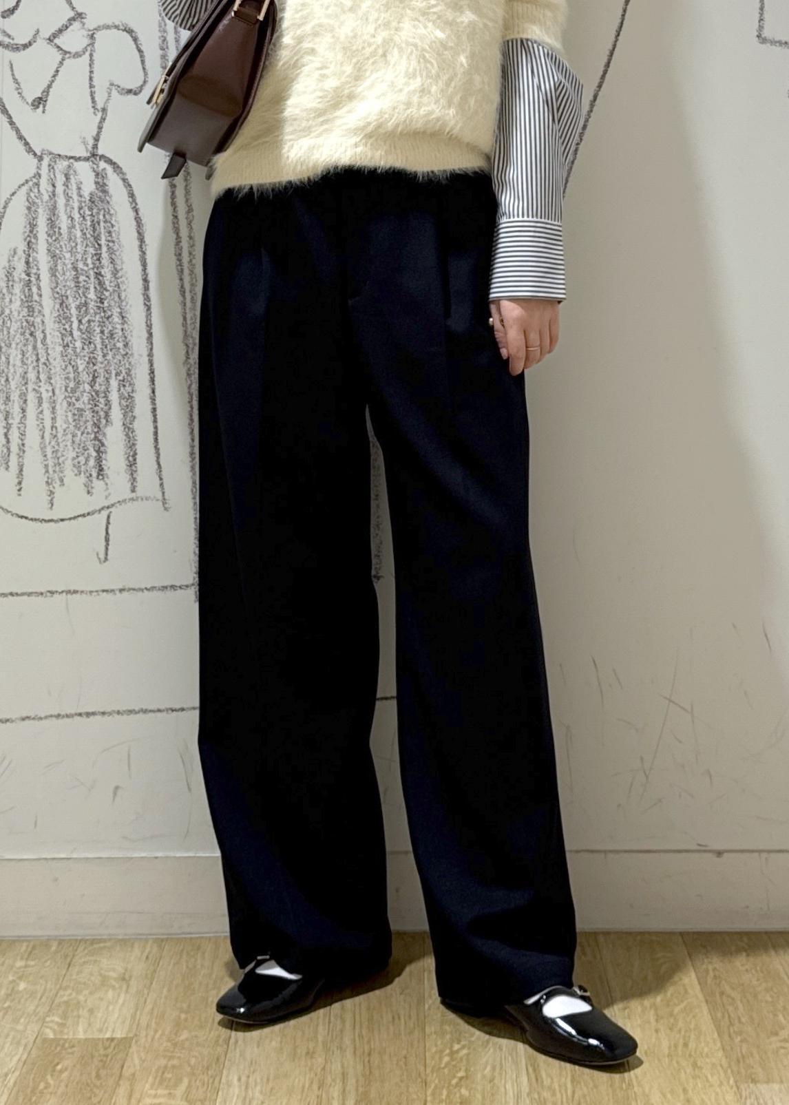 ROPÉ PICNICレディハンサムシリーズ ウールライクウエストタックセミワイドパンツ/セットアップ対応ネイビー / M¥5,489レビュー前回も人気だったパンツが再登場♪センタープレスやハリのある生地感は美シルエットと高見えを両立してくれます。162㎝でローヒールと合わせると丁度いいバランスで履けました。