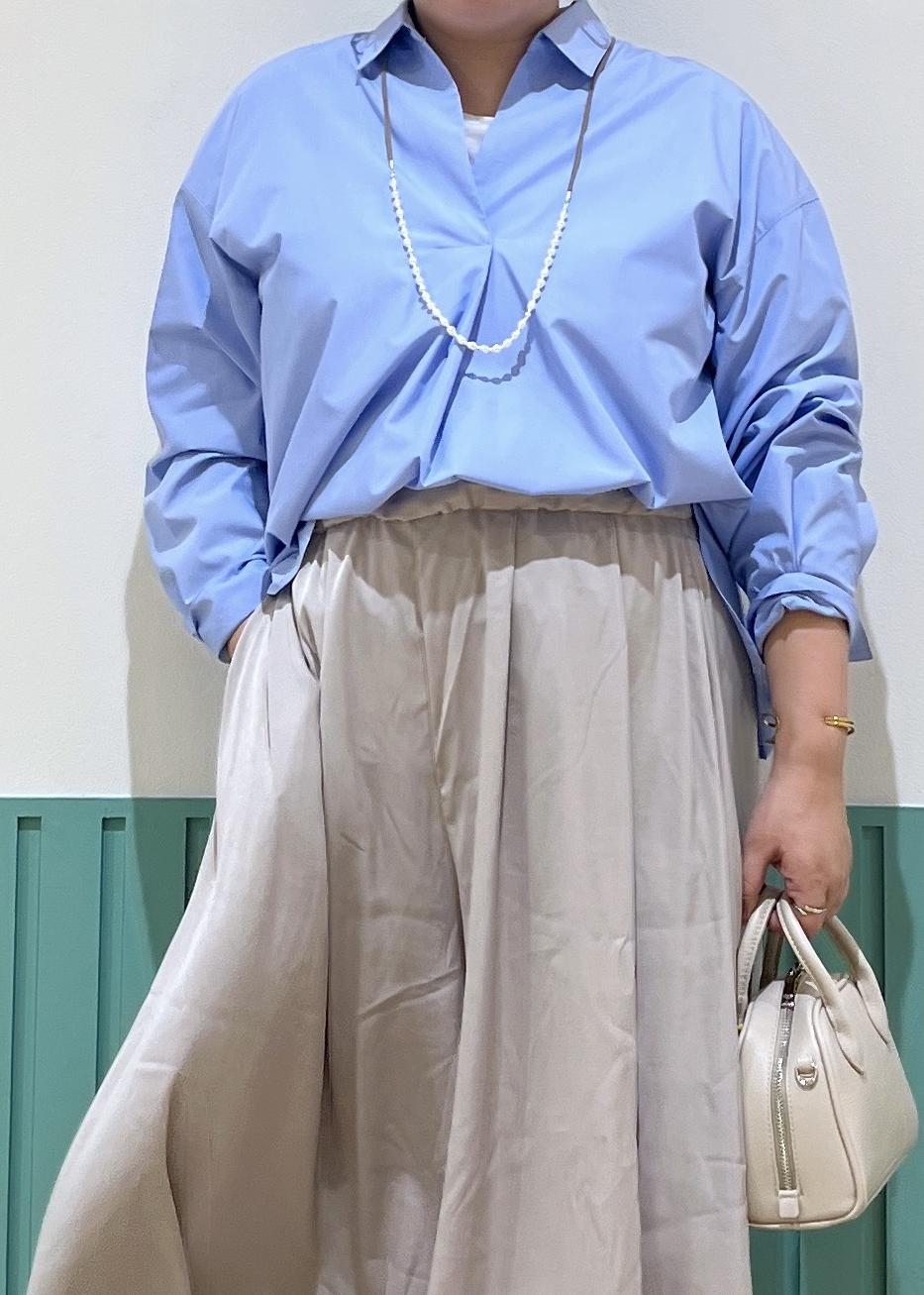 ROPÉ PICNICスキッパーシャツ/UVカット・イージーケアサックス / F¥4,499レビュー首元に程よく空きがあるので、