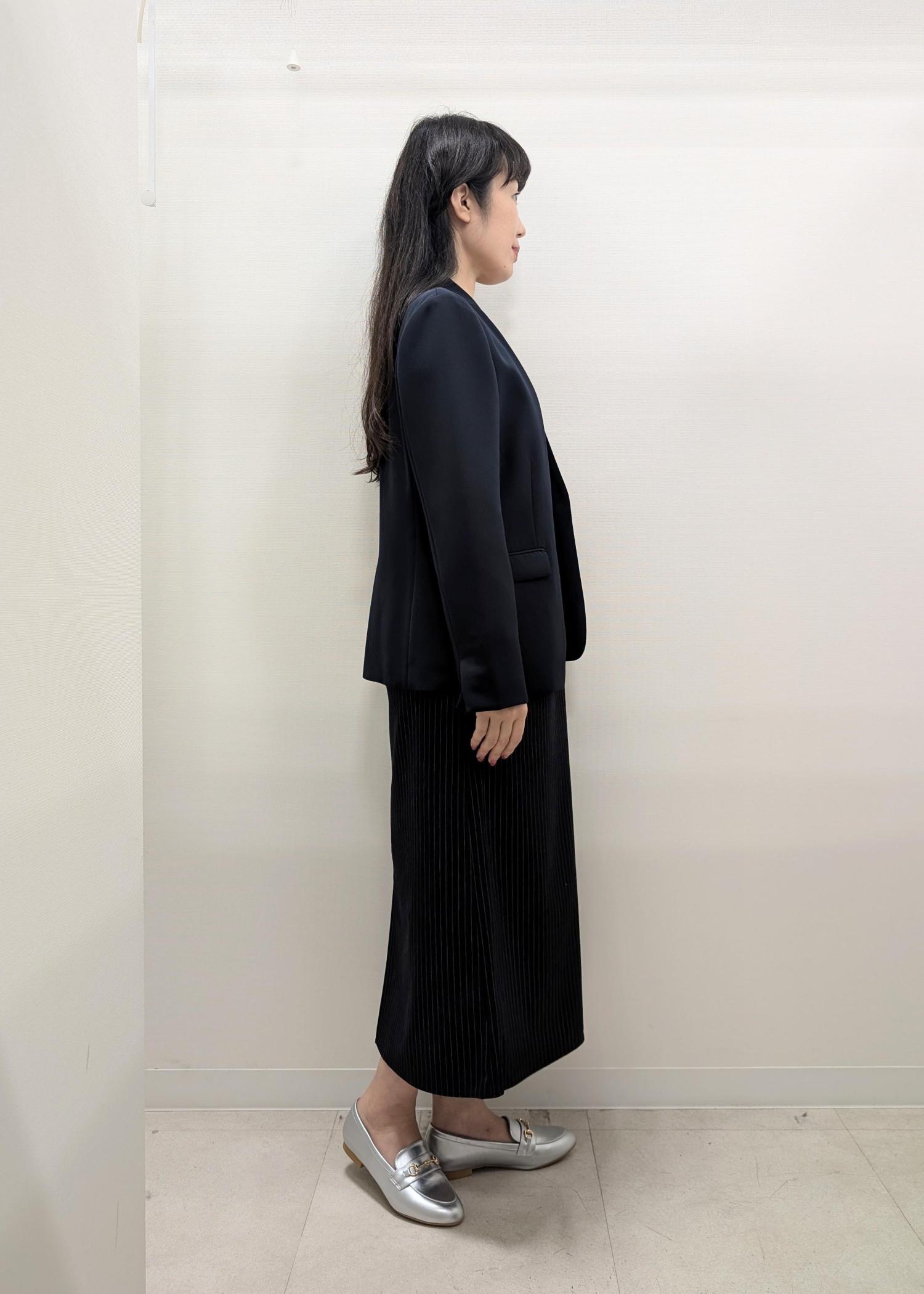 モード感ある着こなしがお好きな肩は1サイズ上もおすすめです。