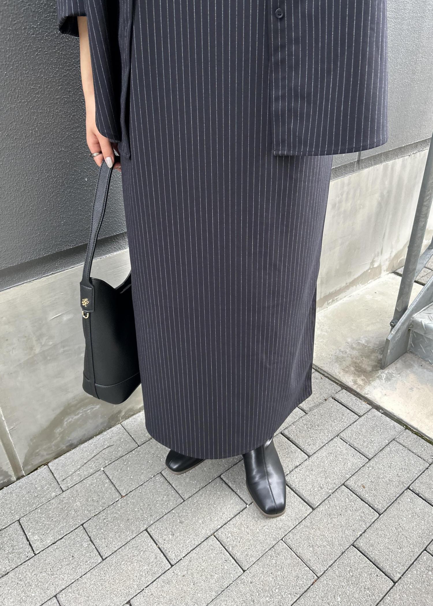 ややハリのある素材感で、セットアップで着用しても上品な雰囲気です。