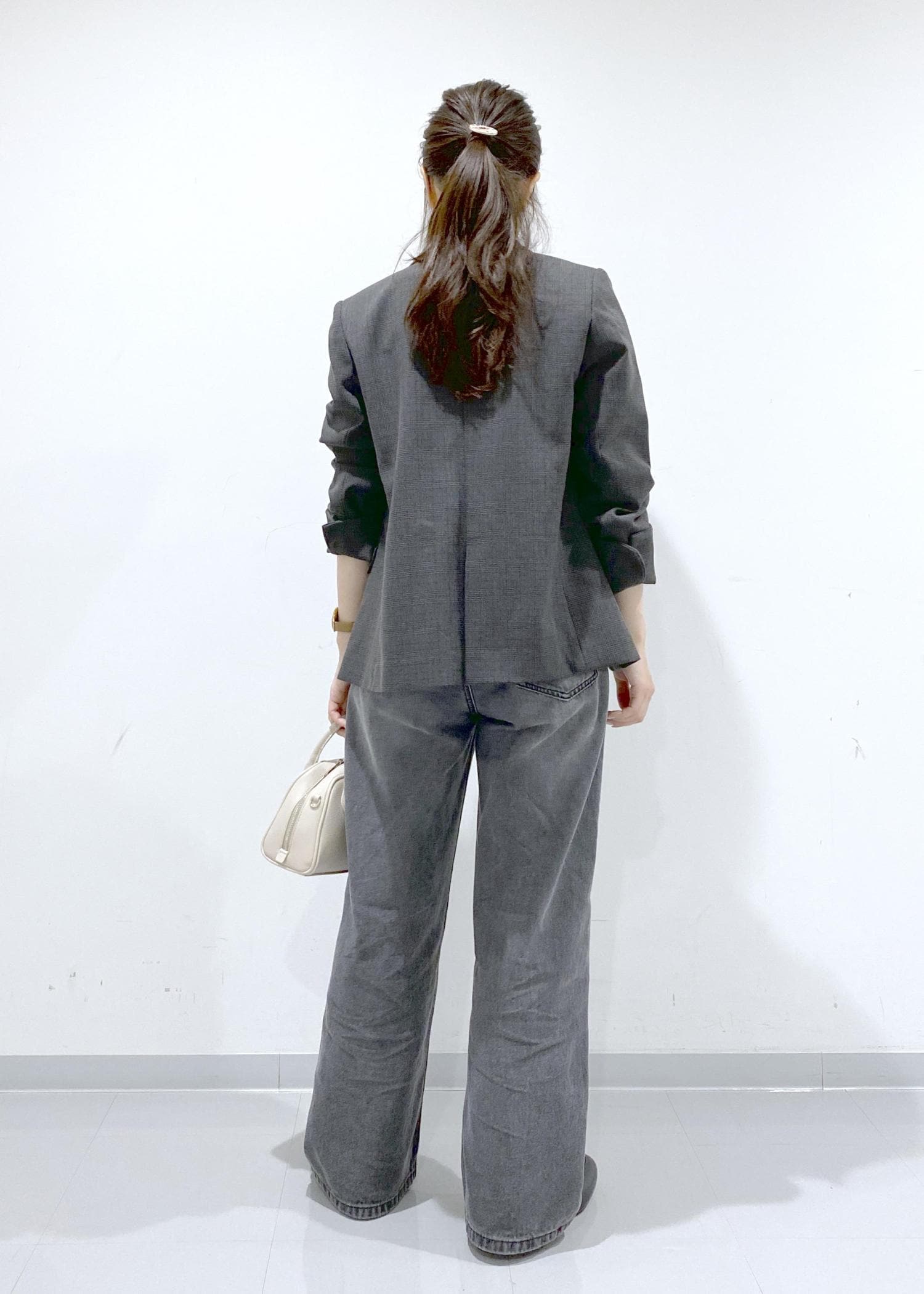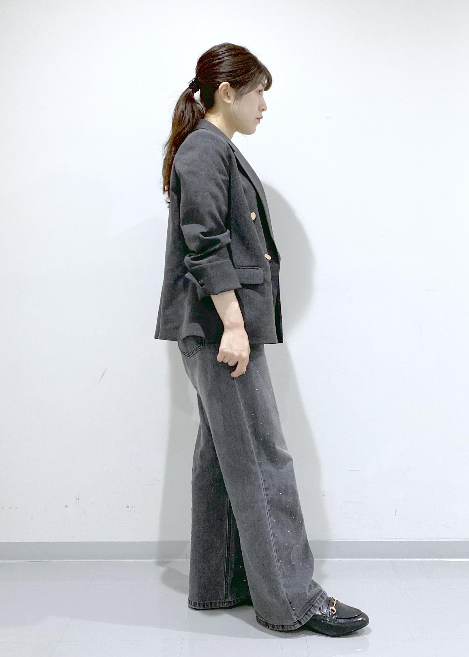 低身長の方は、厚底やヒールのある靴と合わせていただくとバランスが良さそうです。