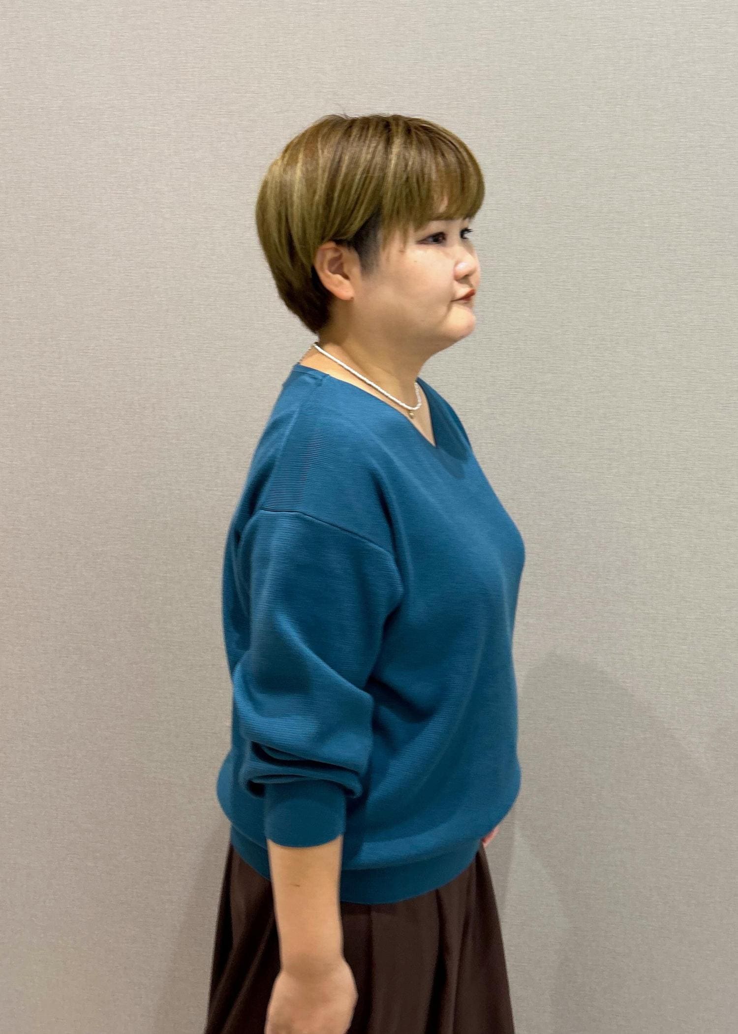 マシュマロニットVネックプルオーバー/イージーケア・リンクコーデ