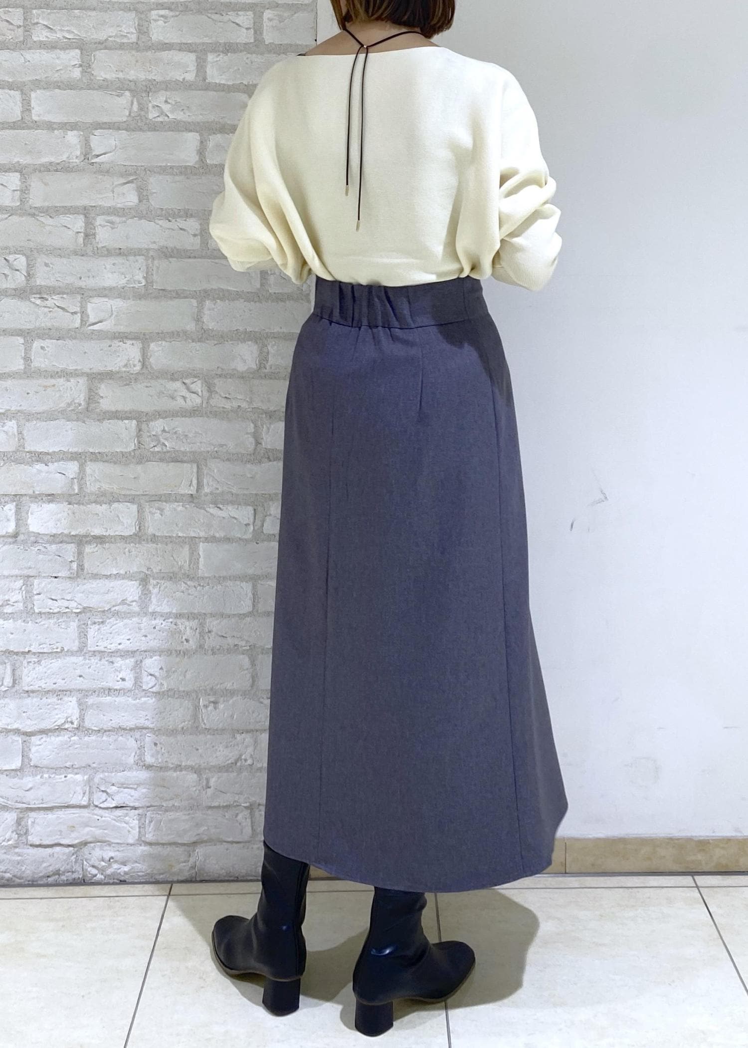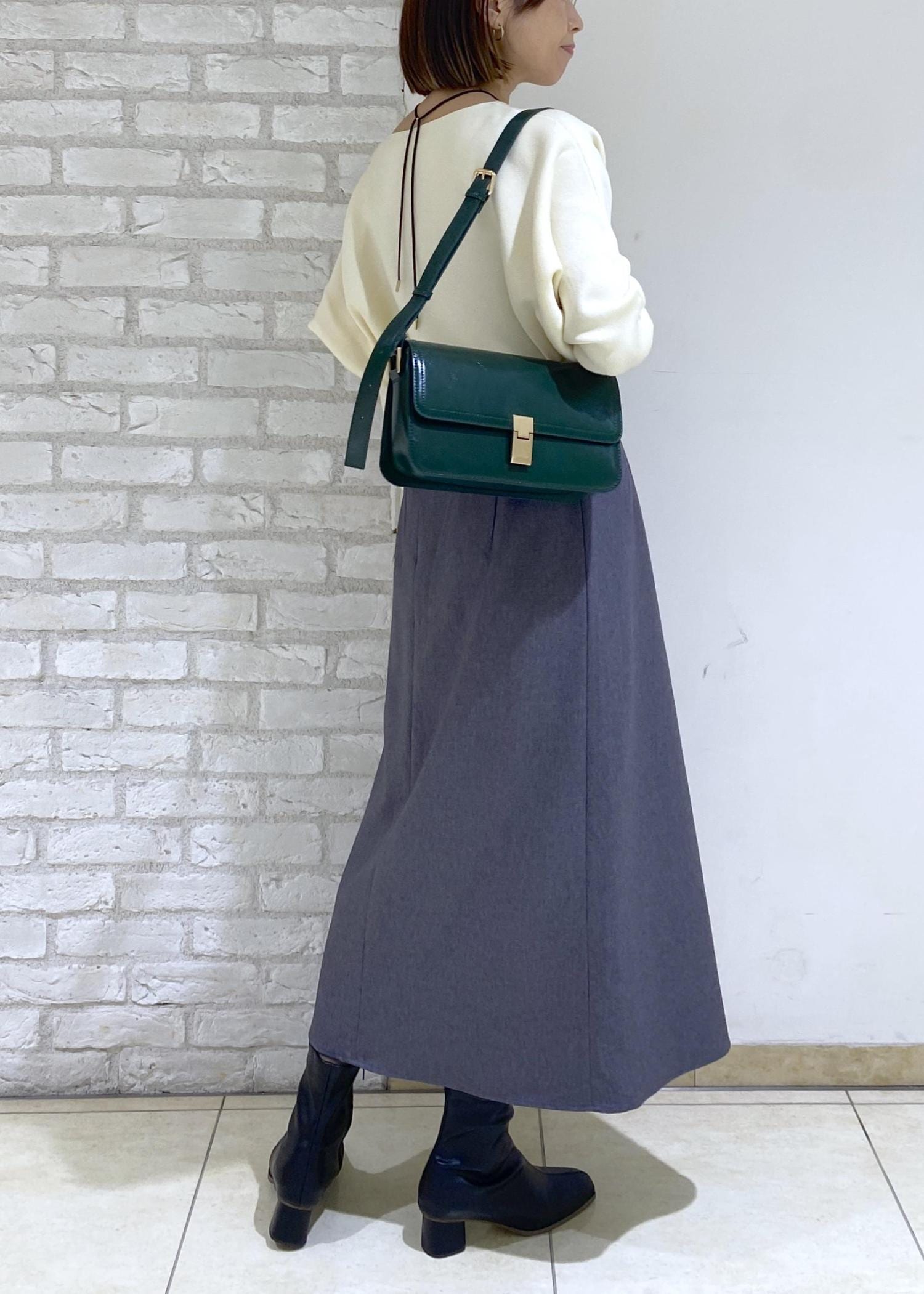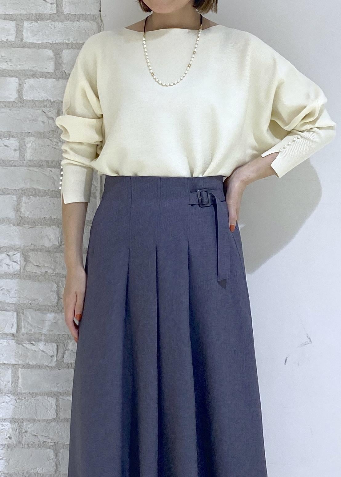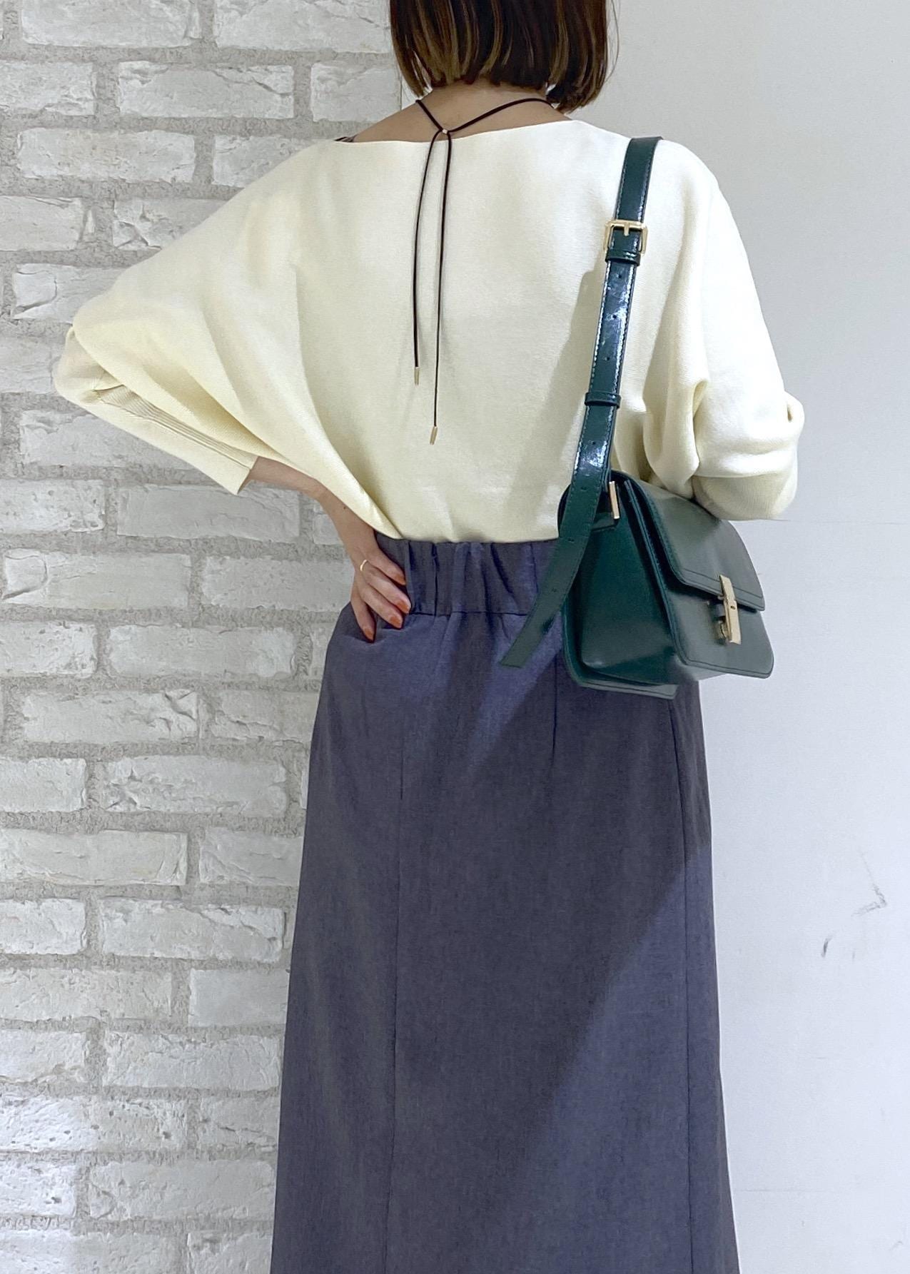首まわりは鎖骨が隠れるボートネックで華奢見せしてくれます。