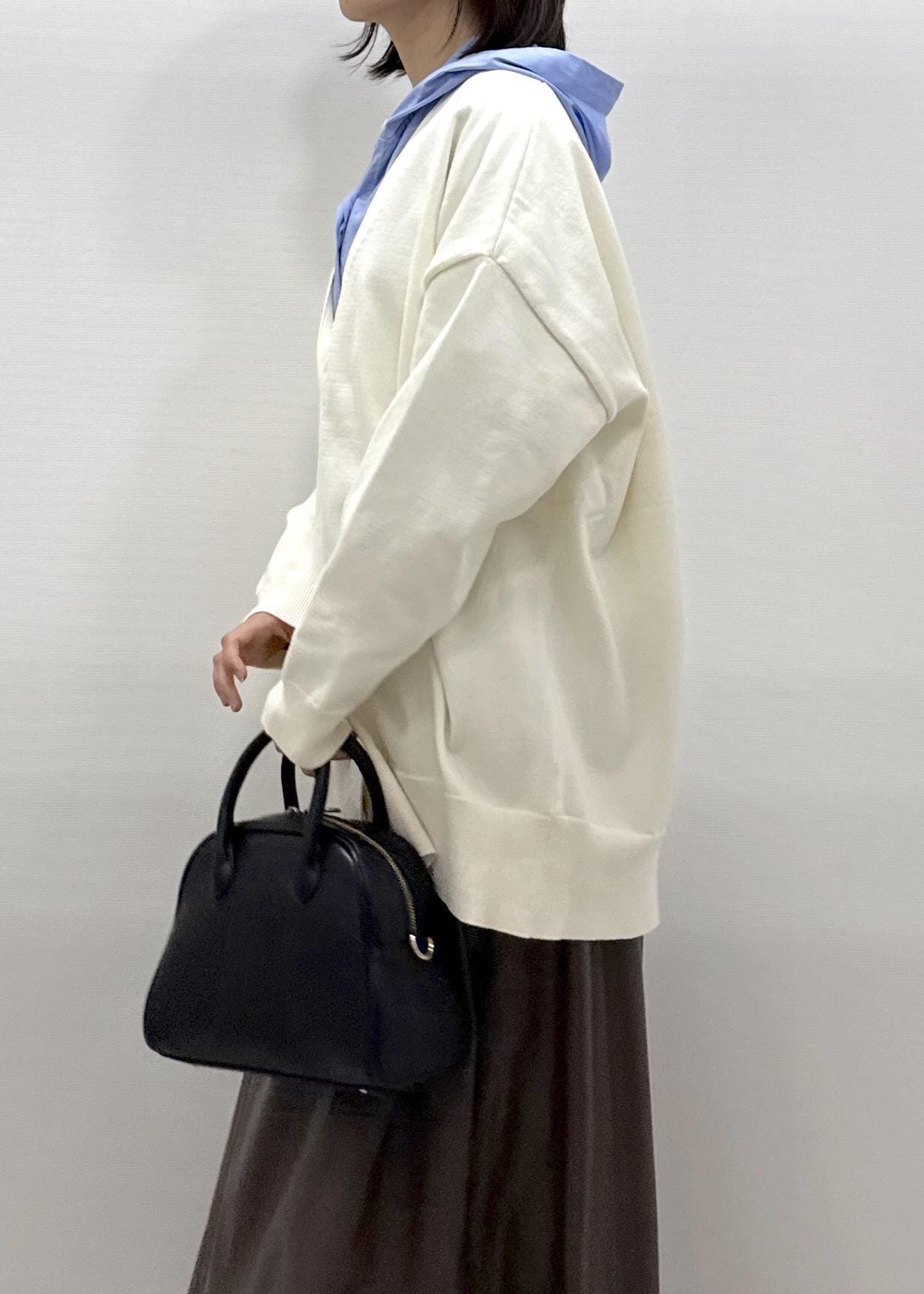 深めのVネックなので首元の詰まったトップスを合わせても抜け感がでて◎ -