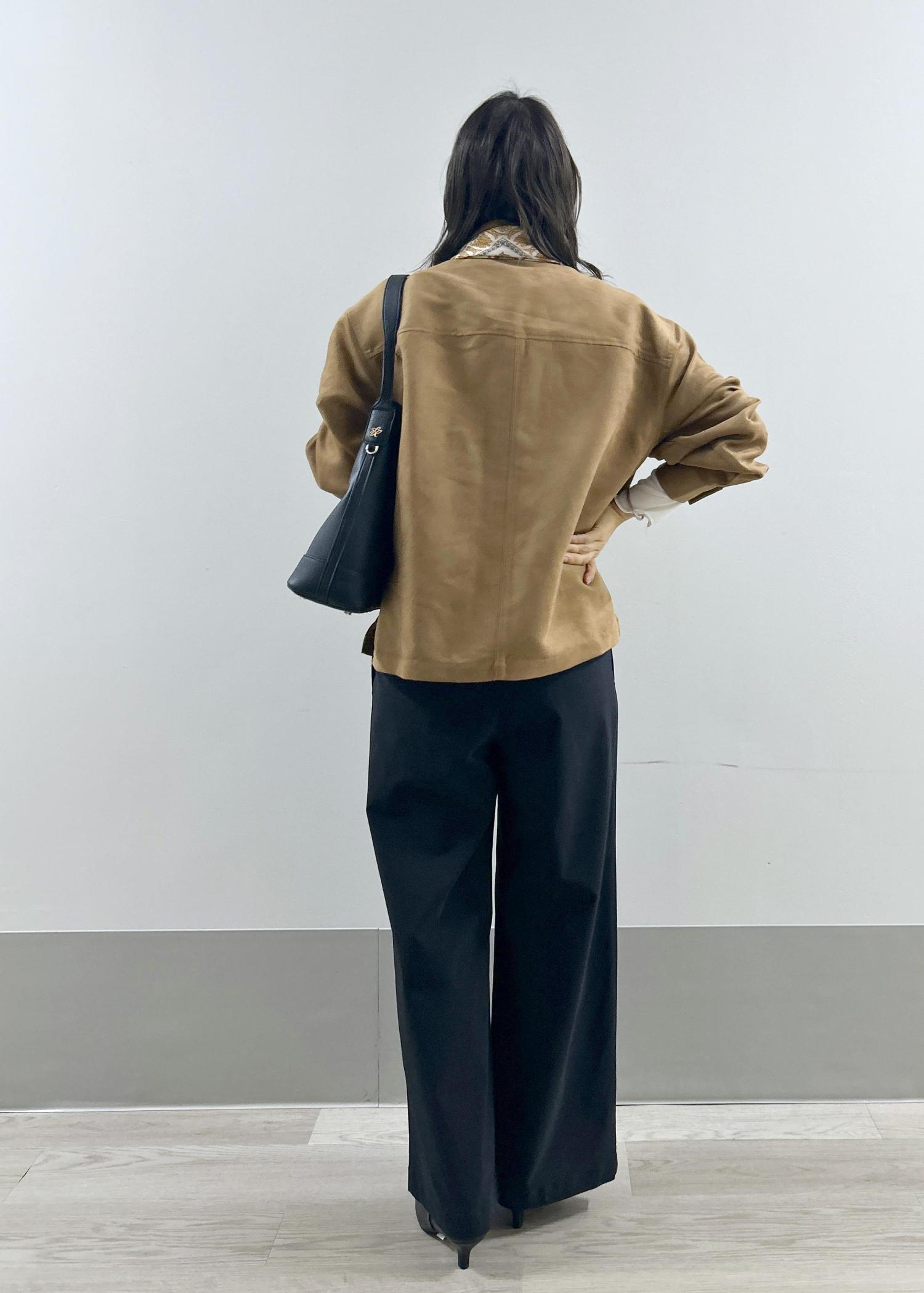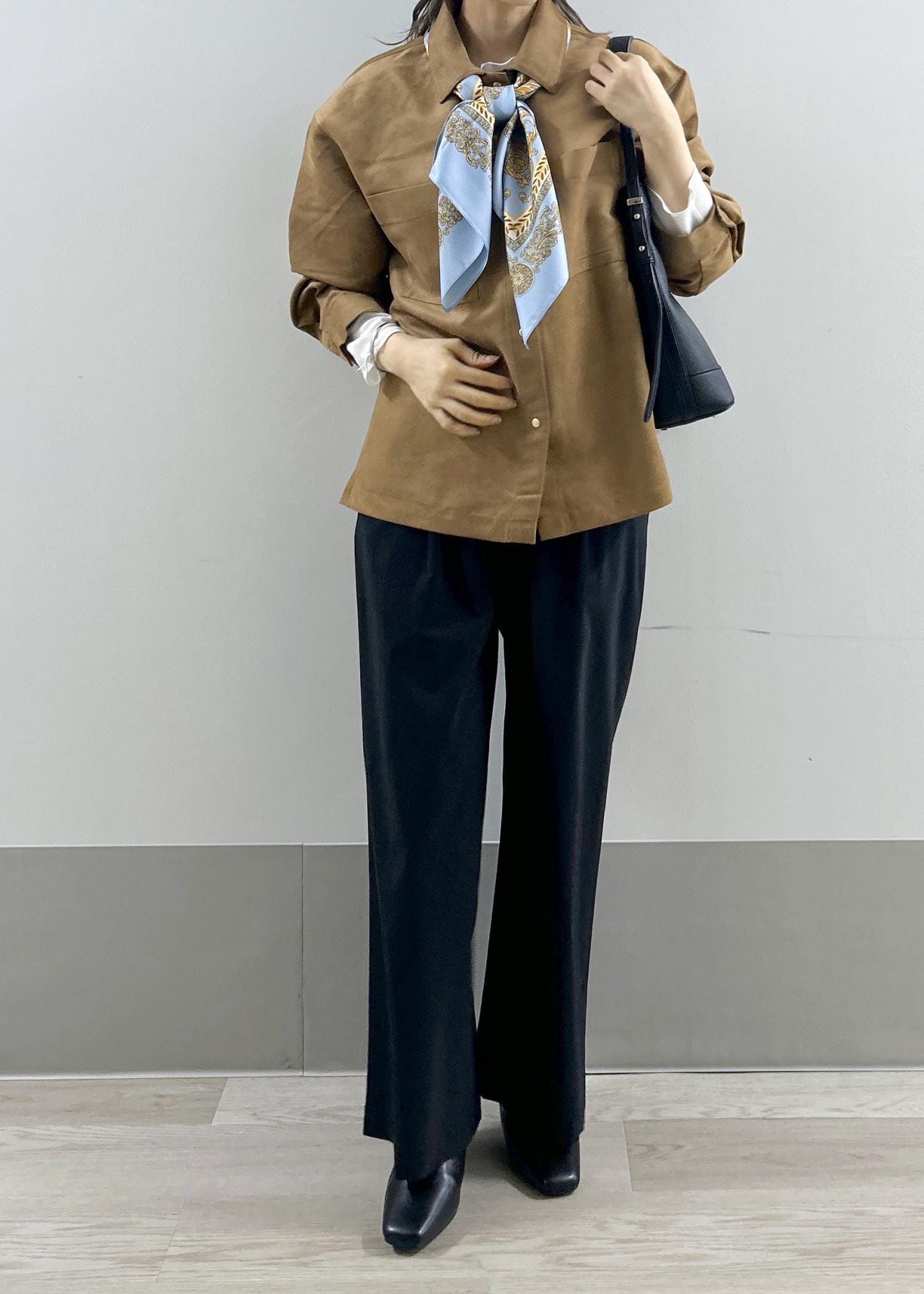 トレンド感のあるスエードシャツで今年っぽいスタイリングに。