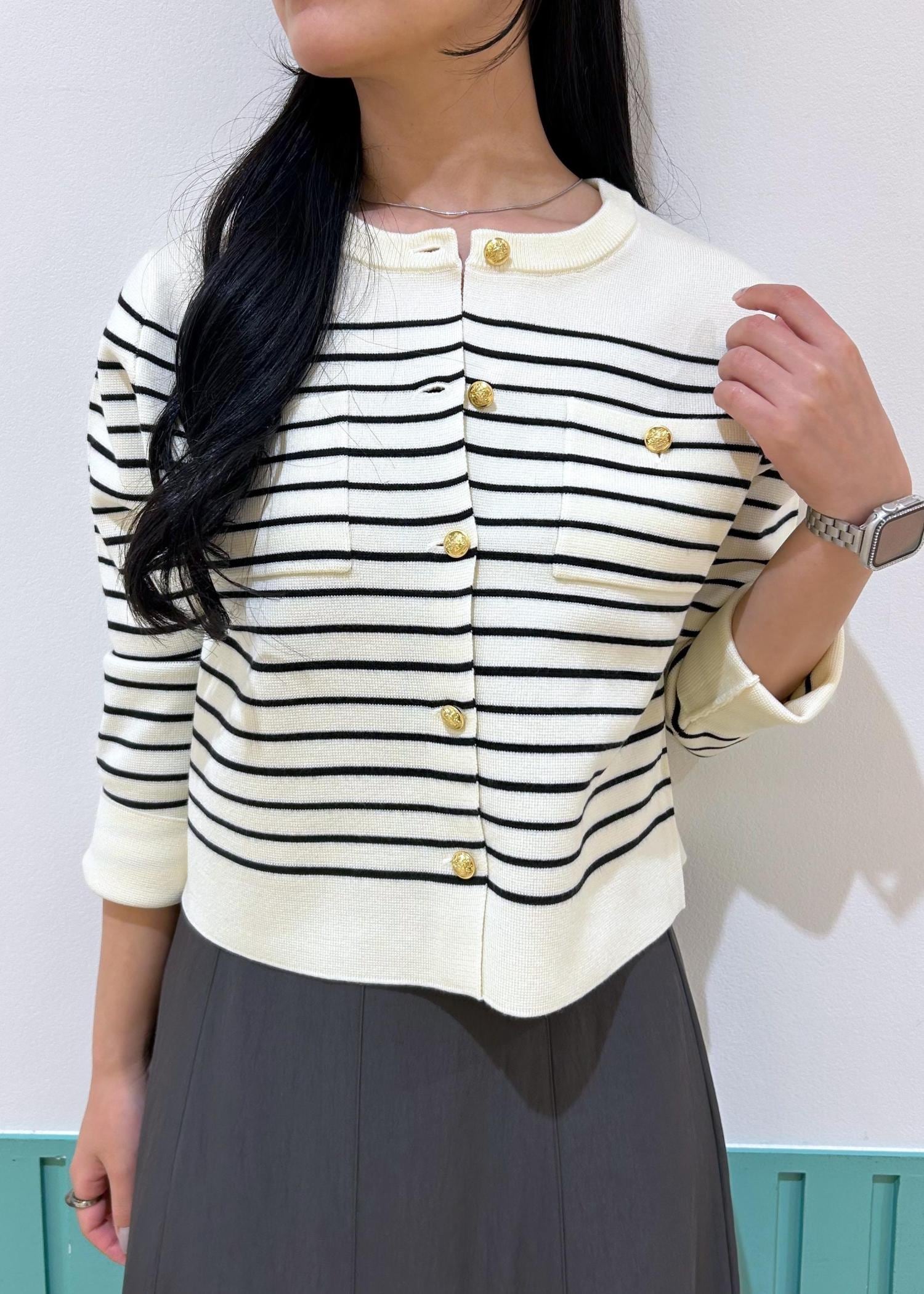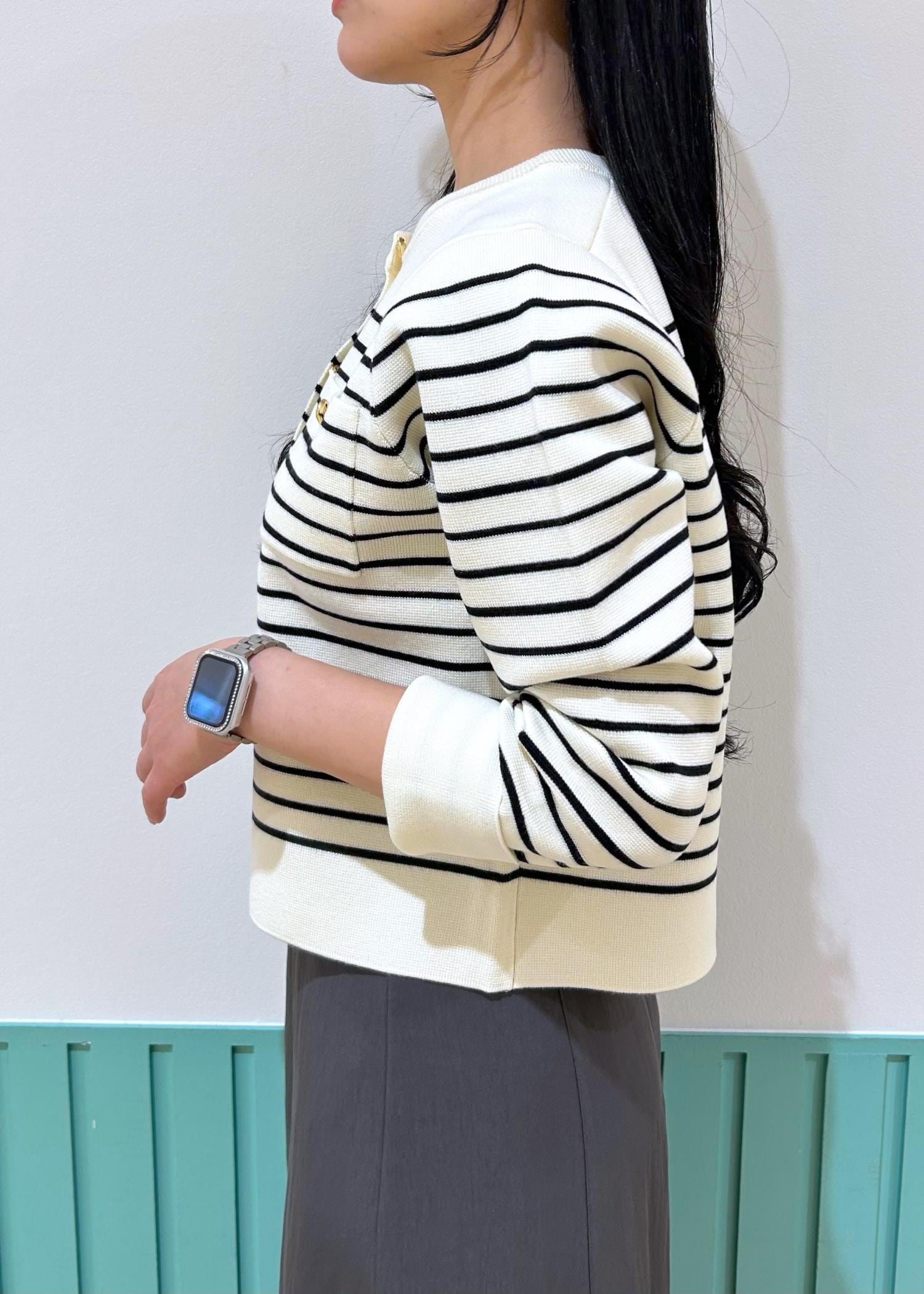 ボーダー柄でも生地がしっかりしているのでカジュアルになりすぎず、