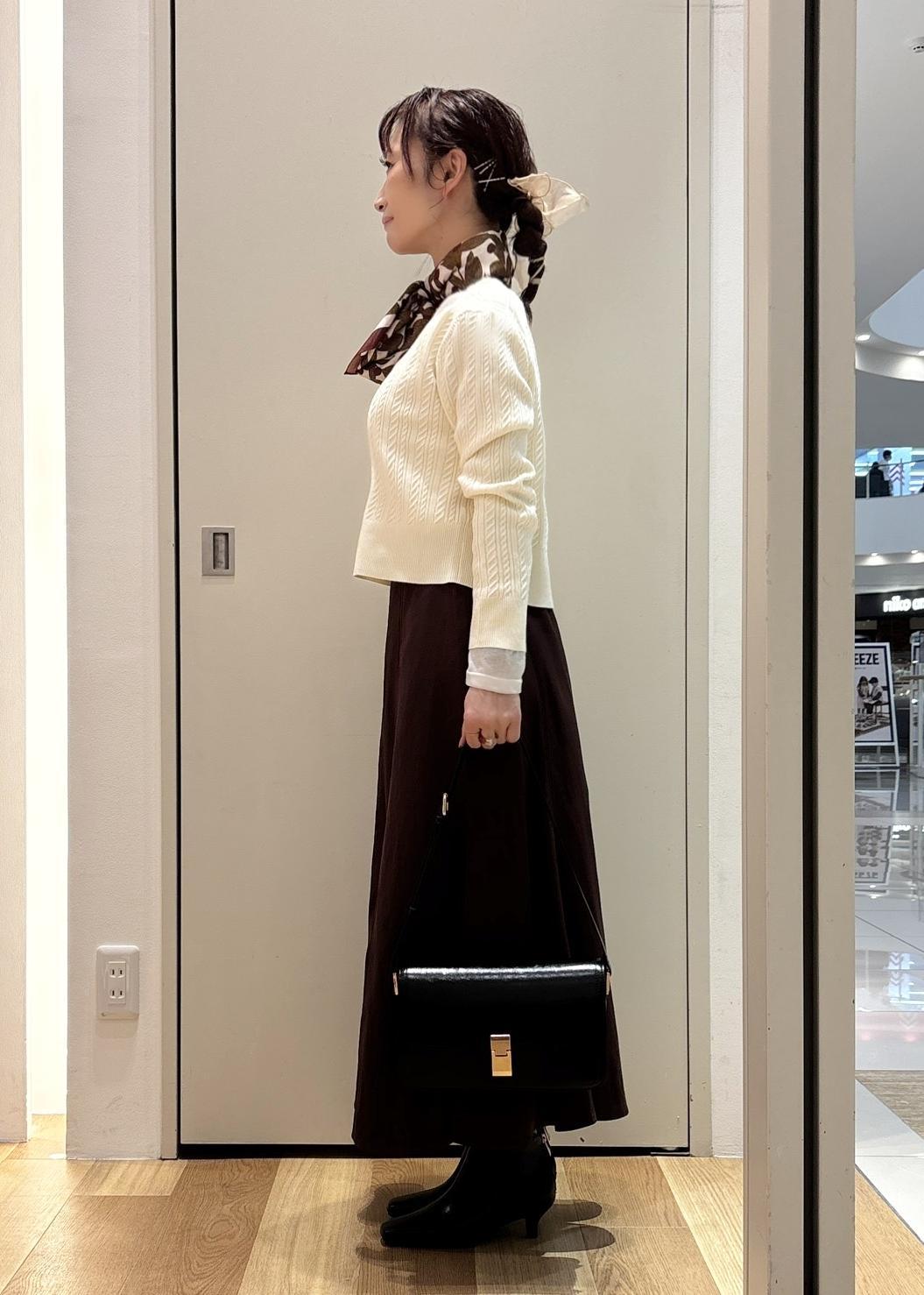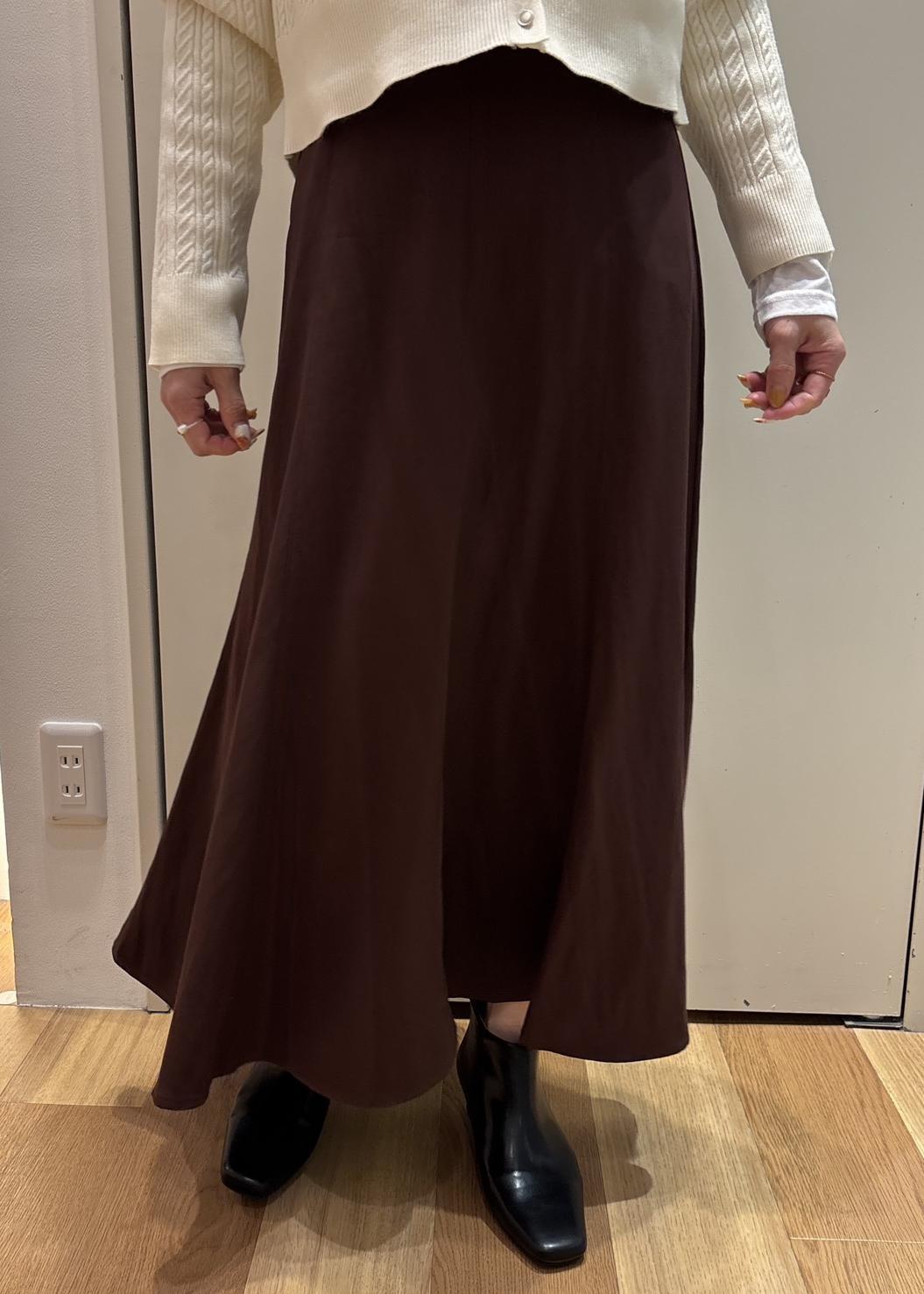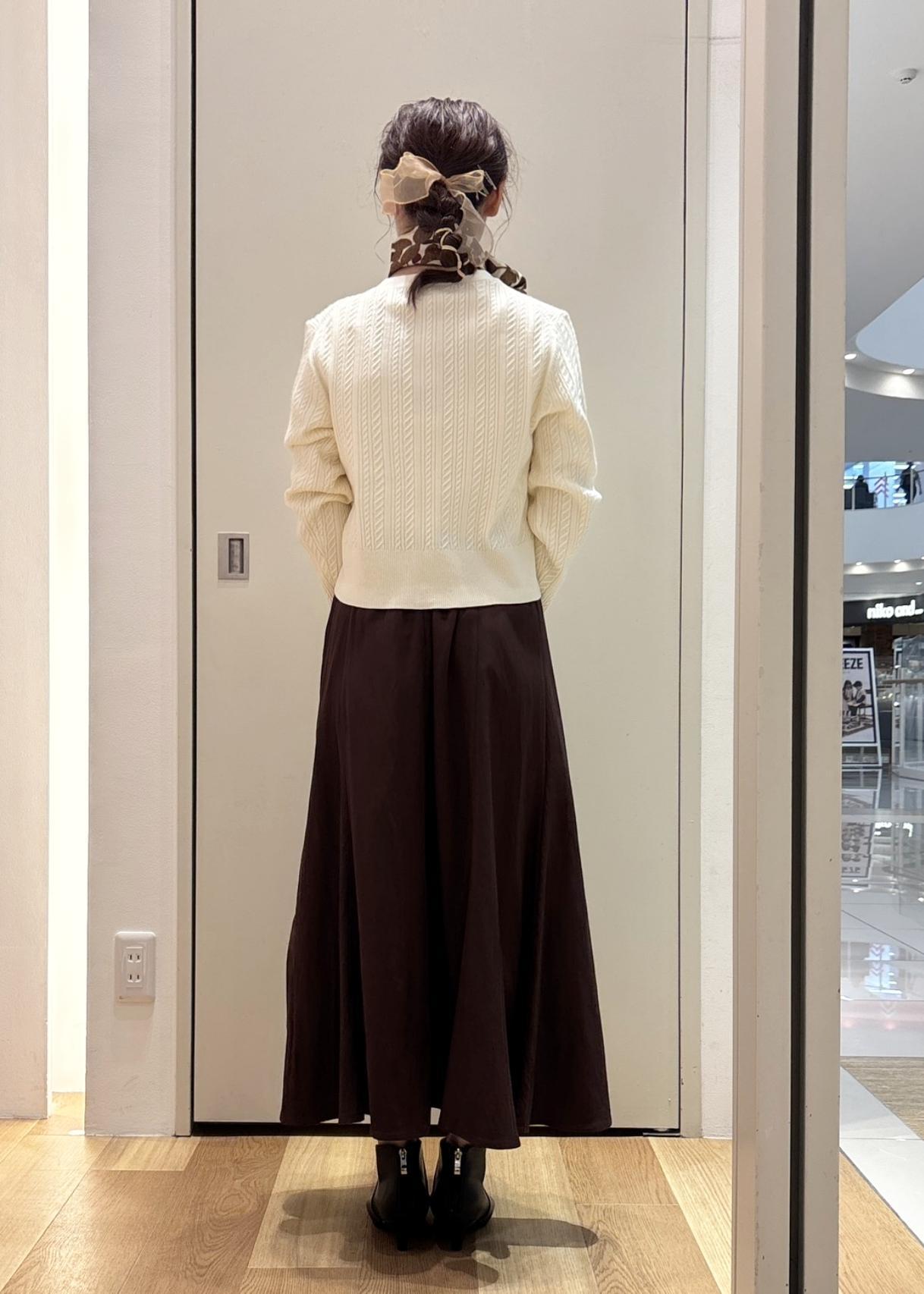 合わせているマーメイドスカートは、ヴィンテージ感あるフィブリル素材でシルエットも美しいので店頭でも大人気です。