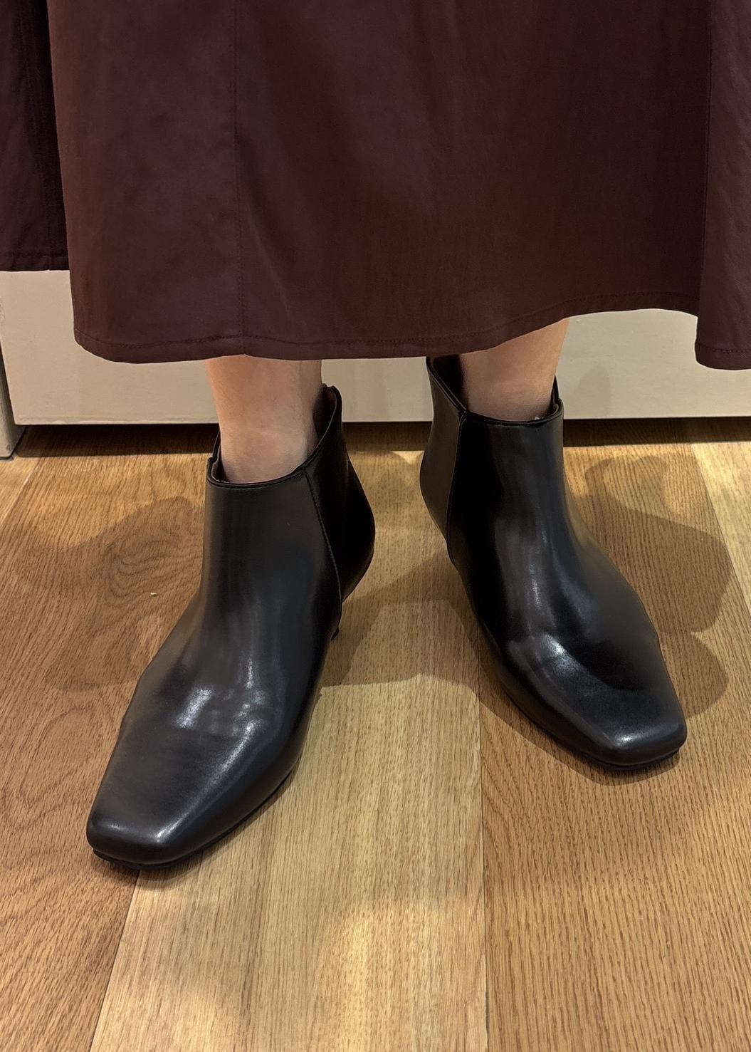 筒丈はくるぶしよりも少し上、ブーティより更に高さがないのでパンプス感覚で履けるショートブーツです。