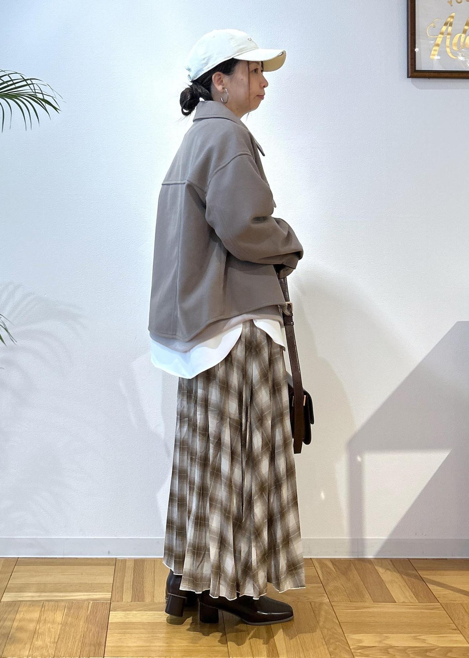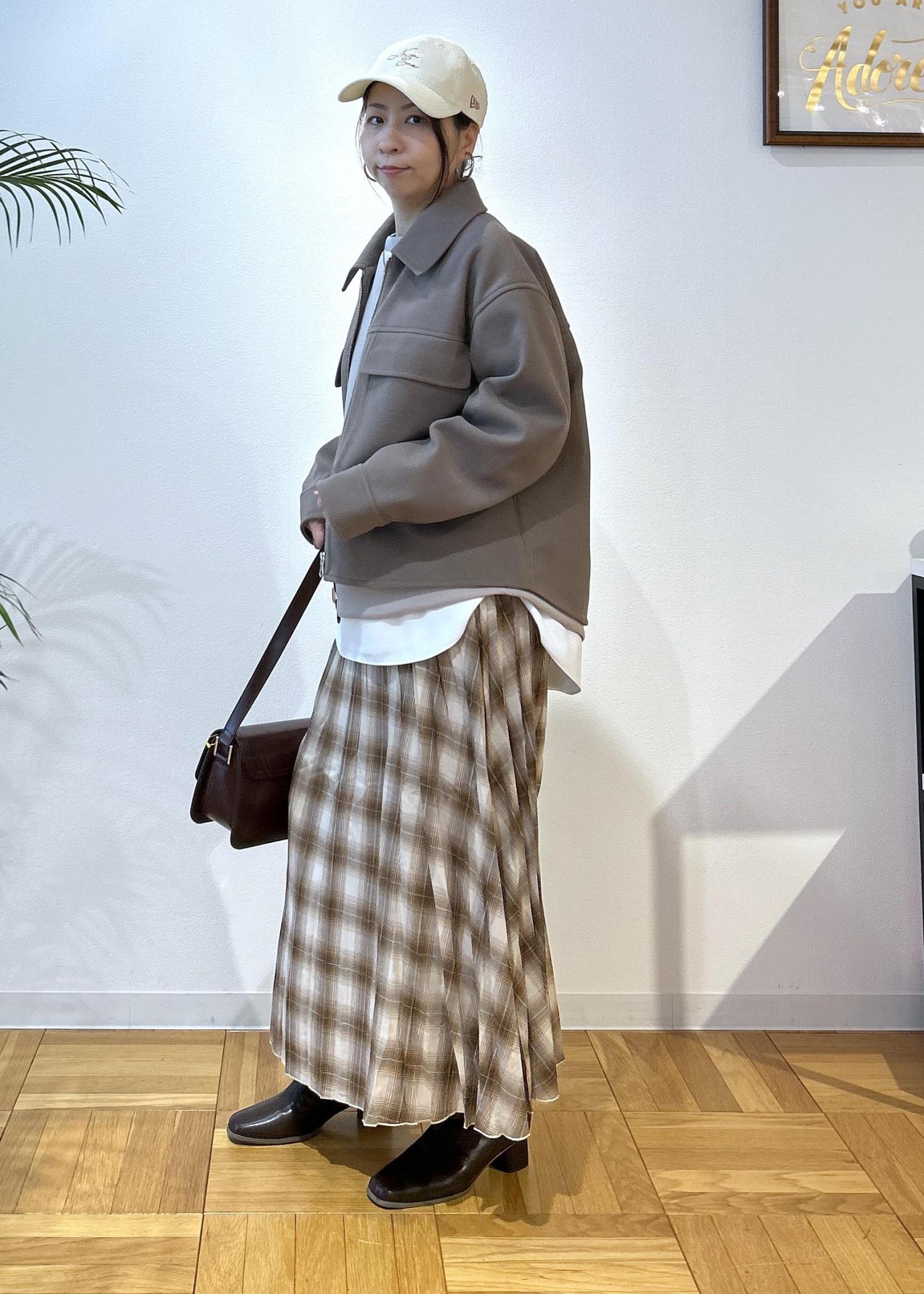 ROPÉ PICNICジャージーメルトンシリーズ ポケット付きジップブルゾン/リンクコーデブラウン系 / F¥9,999レビュー軽アウターとしては使いやすいシンプルなデザインです。身幅はゆったりスウェットなども着られるくらいのゆとり感です。袖丈もインナーが薄いと手の甲かかるくらいの長めです。