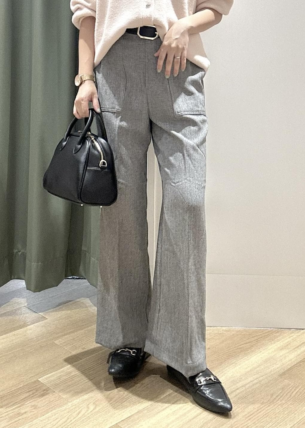 ウエストはゴム仕様ですが、ホールド感のある履き心地。美脚見えするシルエットで、カジュアル、キレイと幅広いスタイリングに合うパンツです♪