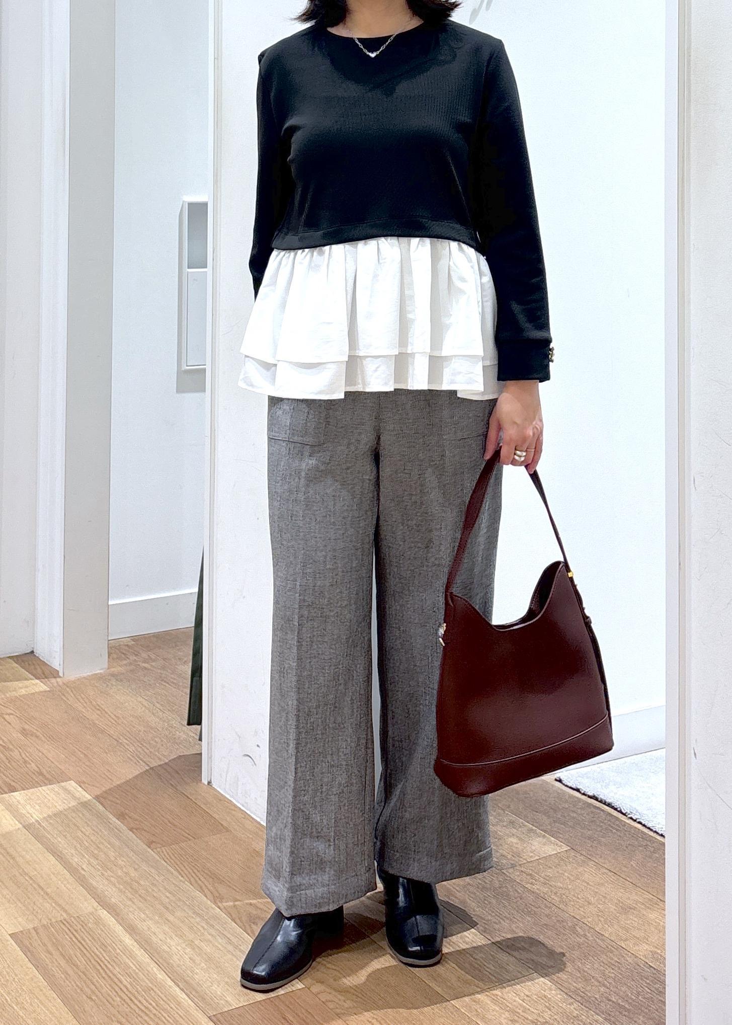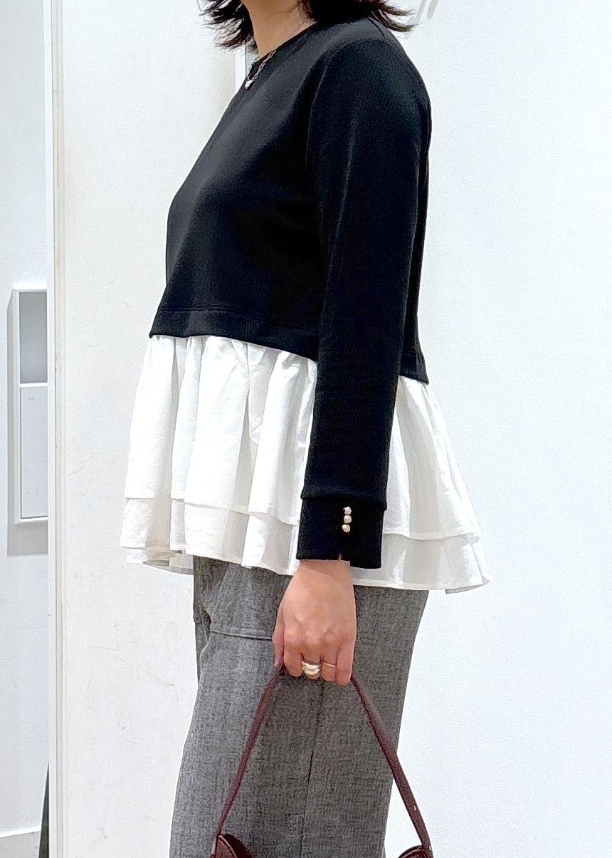 ROPÉ PICNIC布帛ドッキングペプラムギャザープルオーバーブラック / M¥4,499レビュー身幅はゆったり目でアームはすっきりとしています。