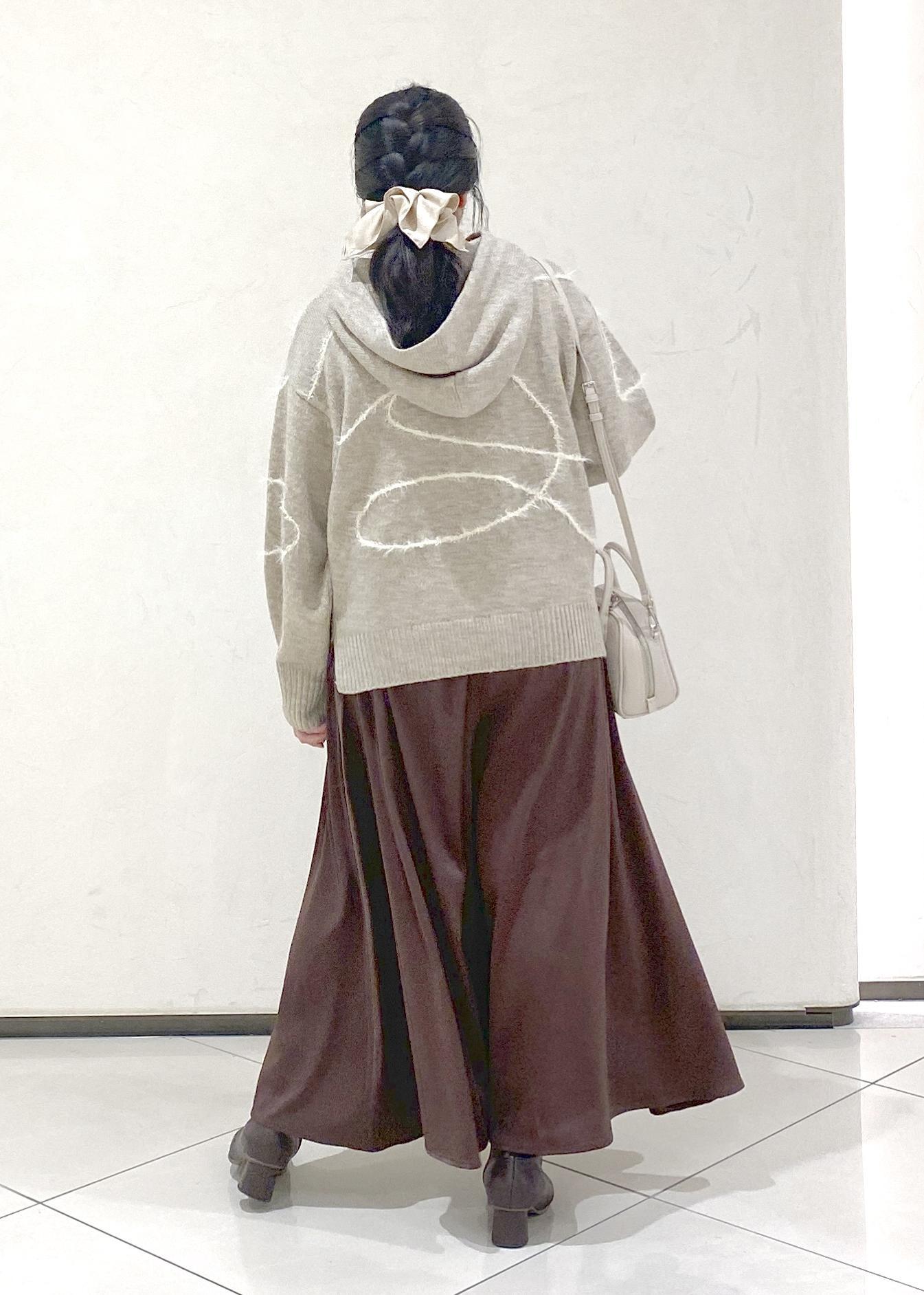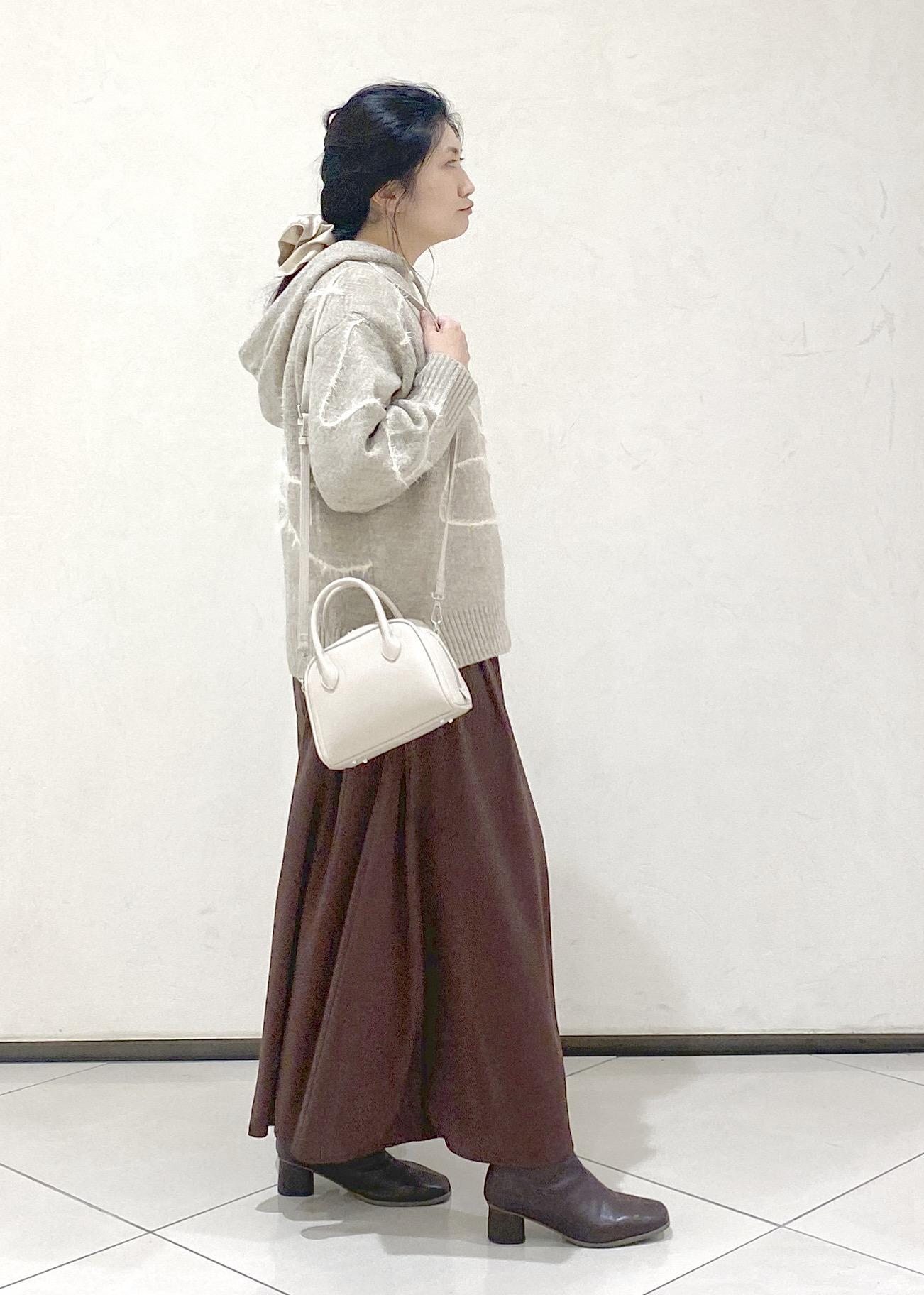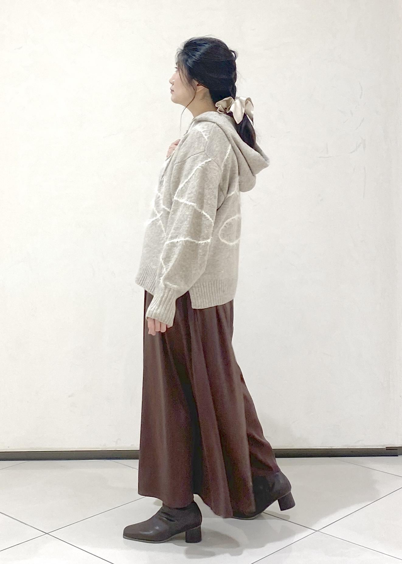緩めのニットとスカーチョにブーツを合わせて大人カジュアルコーデにしました!カラーはトレンドのブラウン♪是非お試しください。