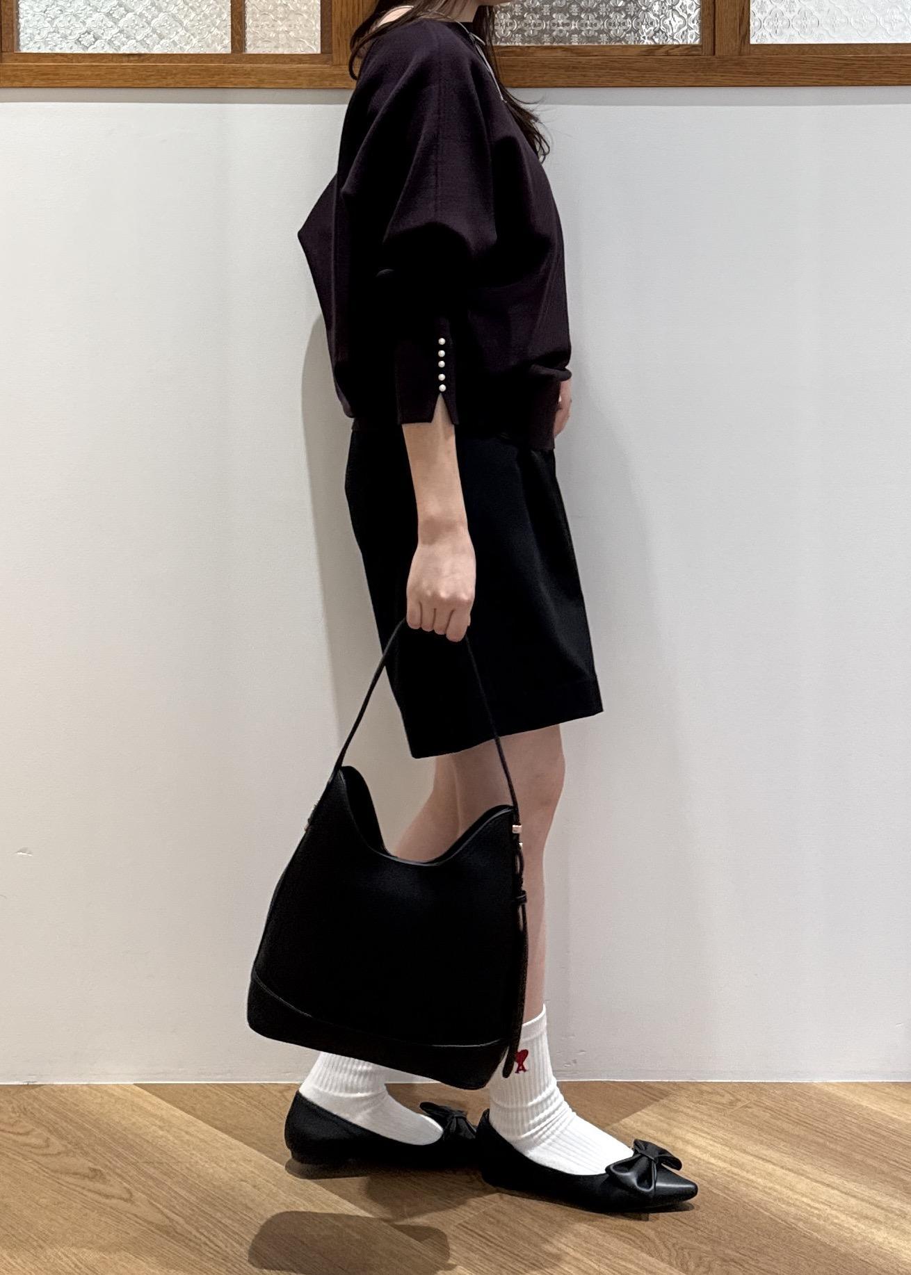小物はブラックであわせ、シックな印象にしたのがポイントです。