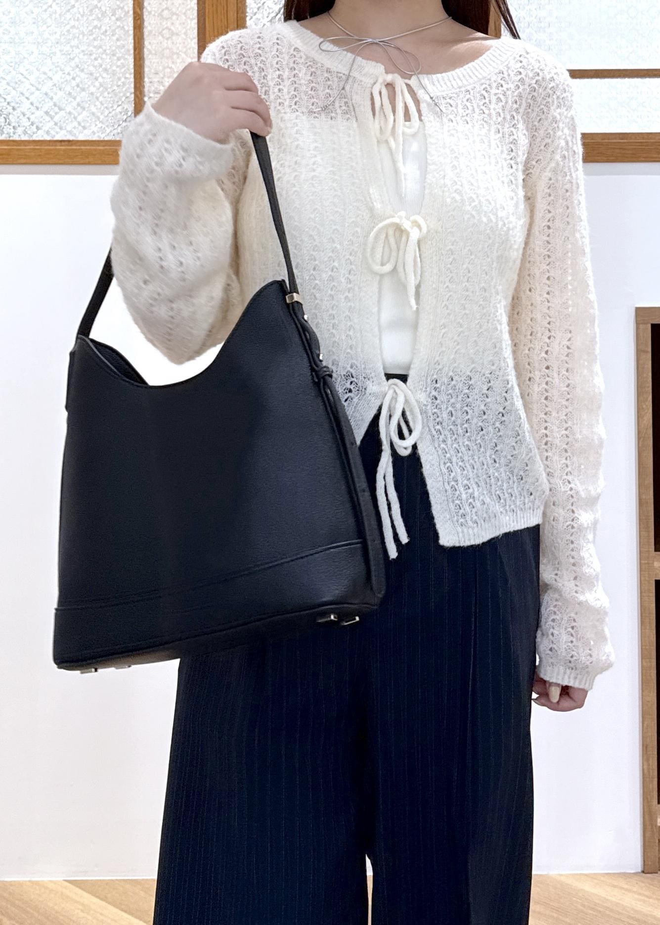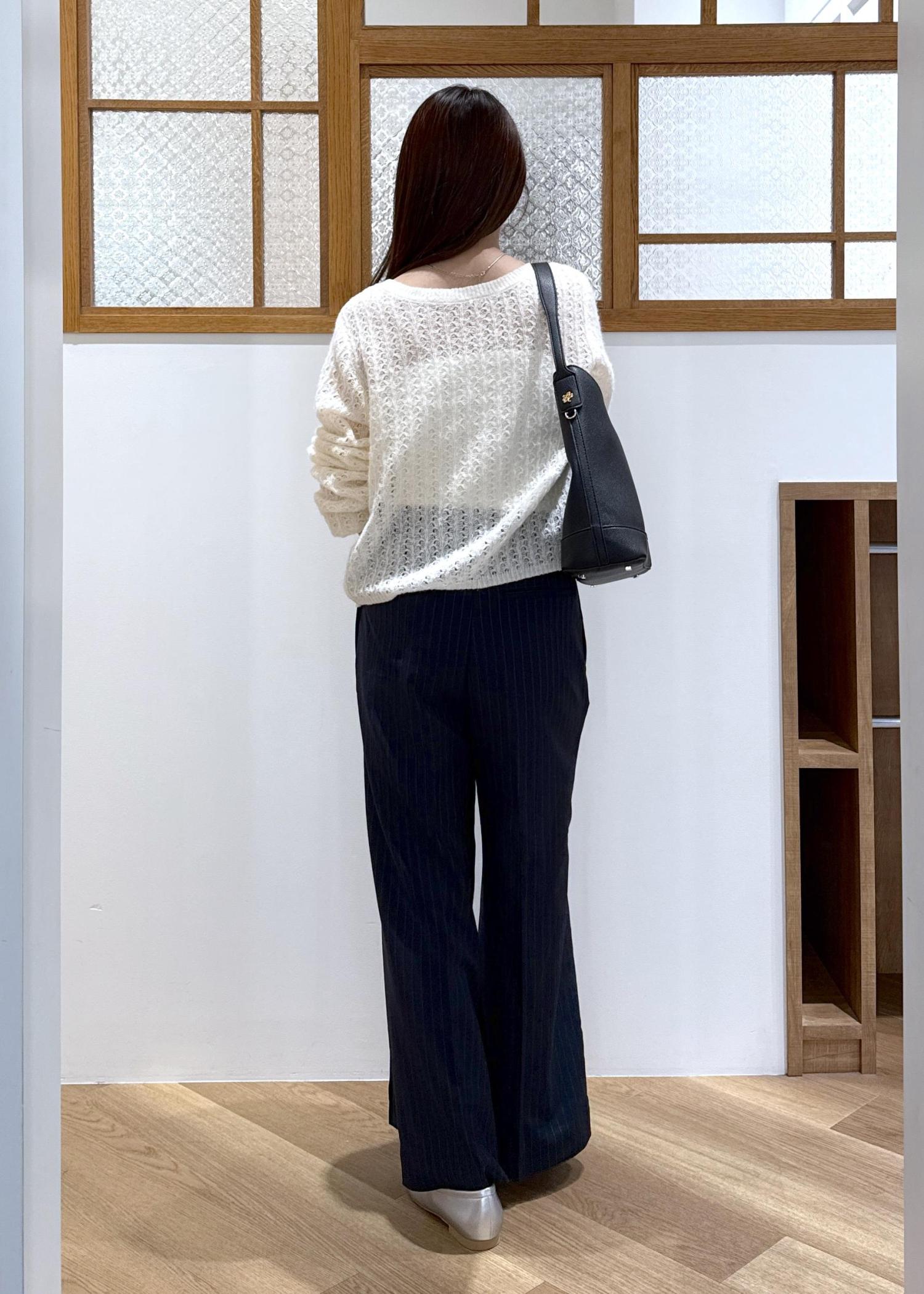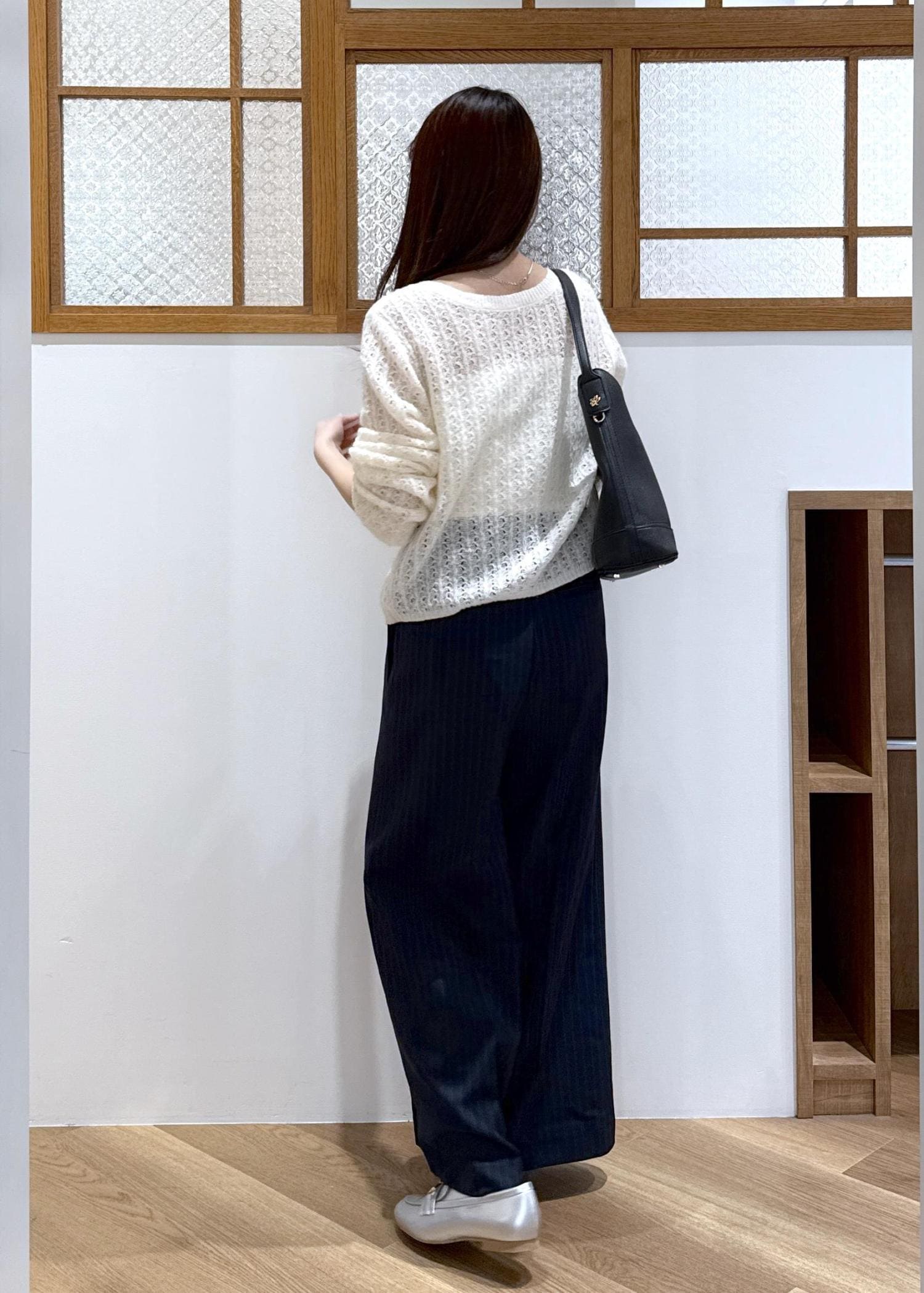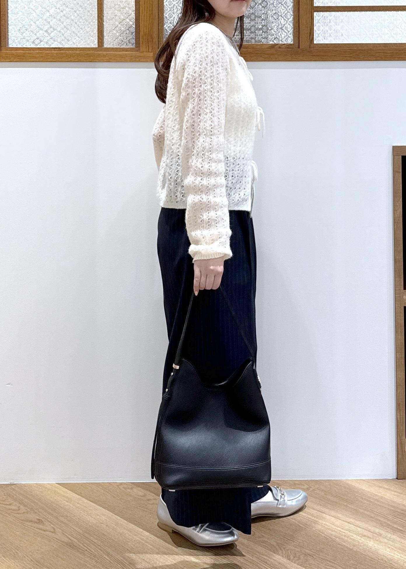 きれいめのバッグを合わせ、オンオフ兼用で着ていただけるコーディネートにしました。