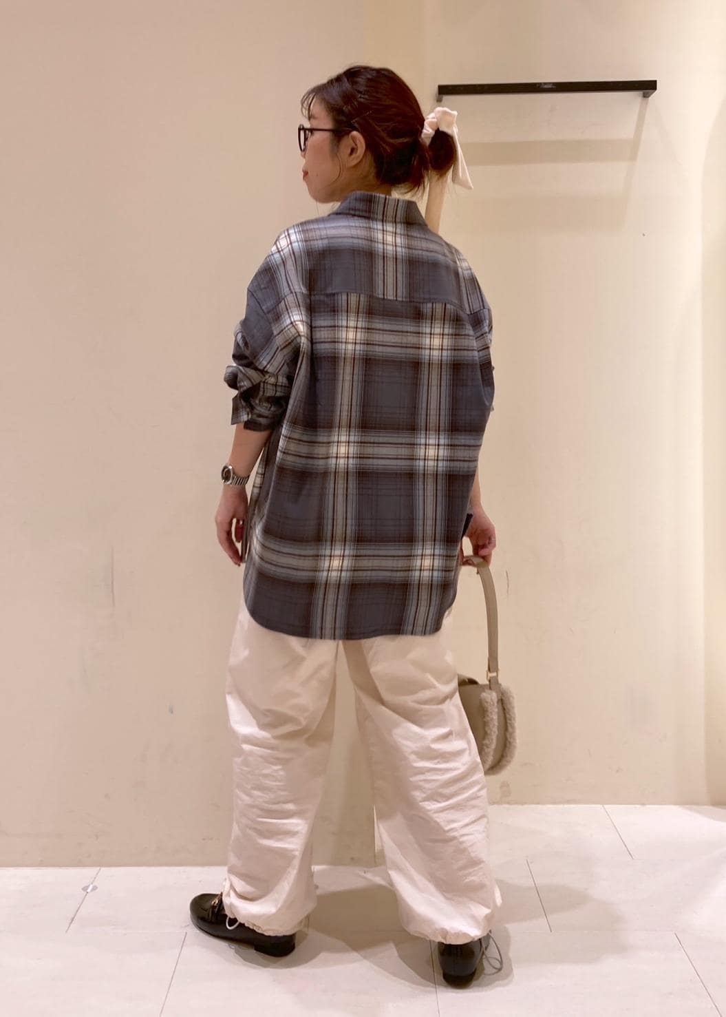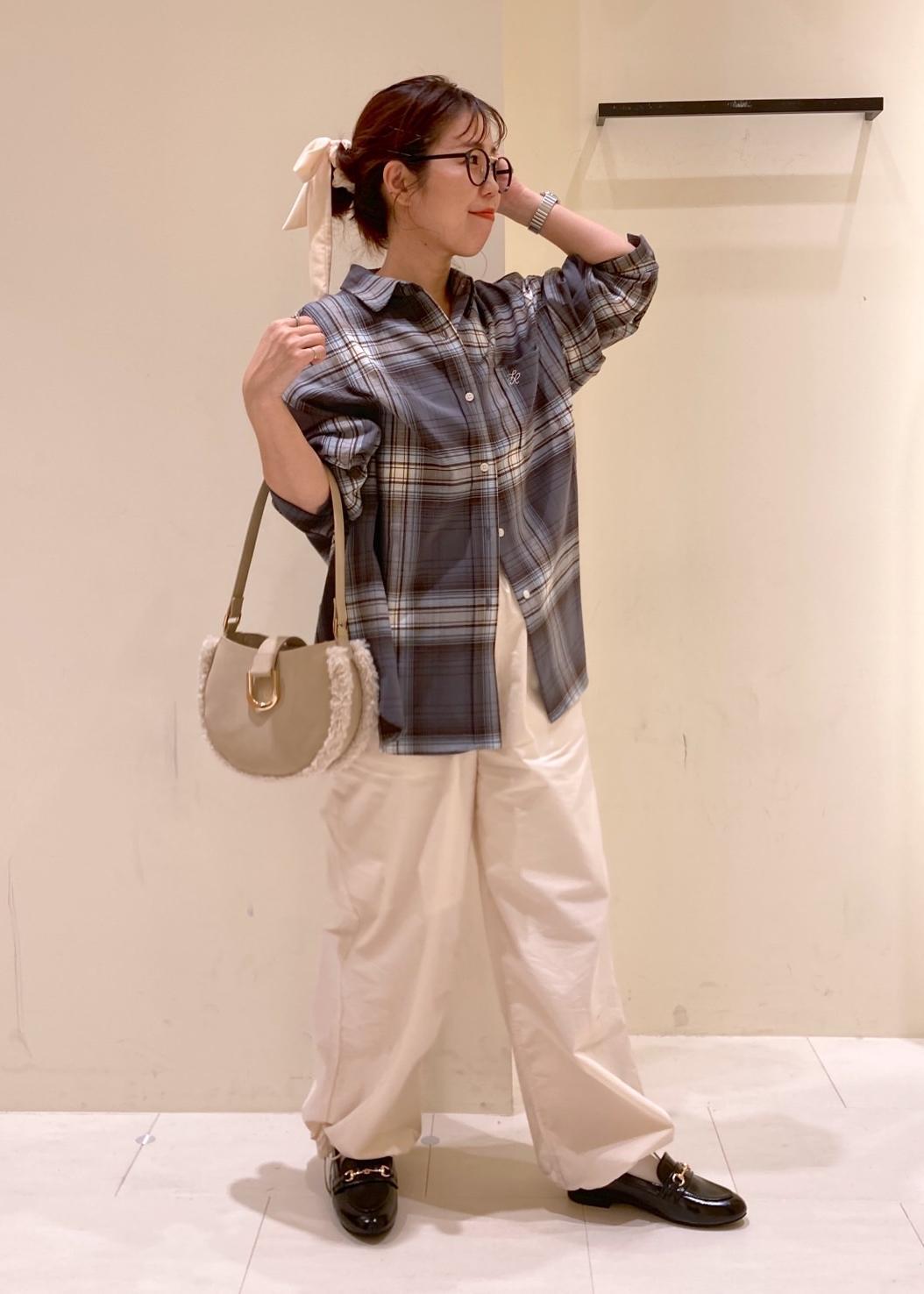一気に秋見えするネルチェックのシャツをメインに、他のカラーはベーシックカラーでまとめました。