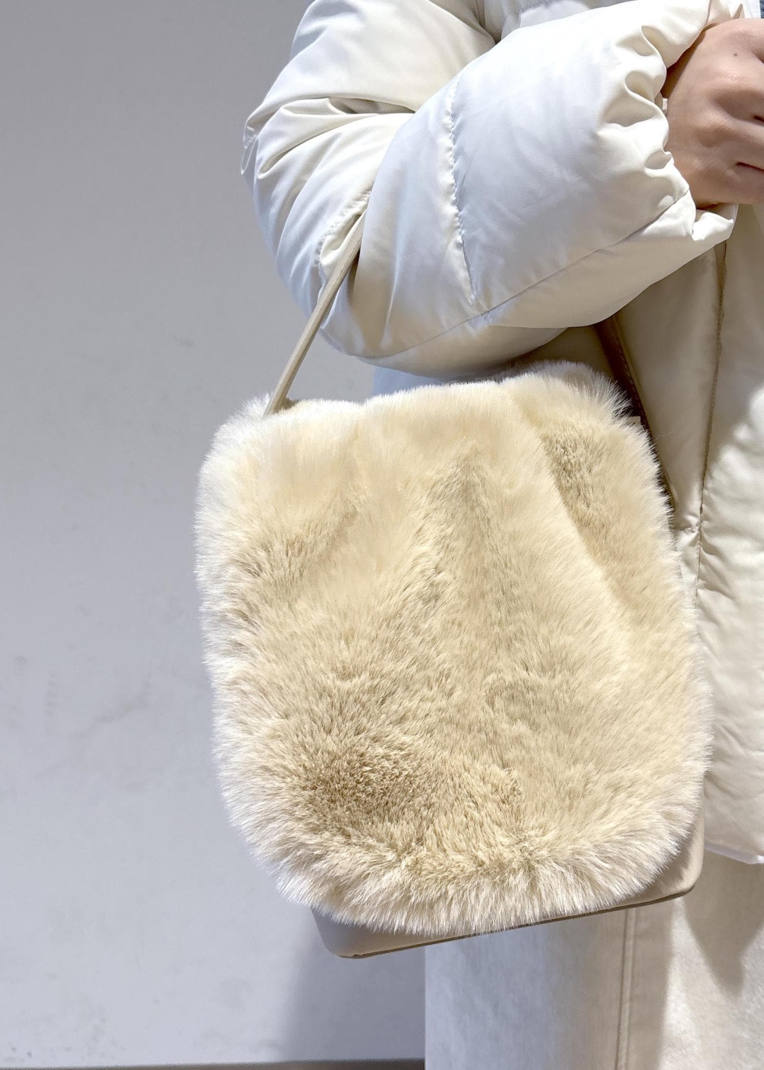 蓋がしっかり被さるタイプなので、中身が見える心配がありません。他のふわふわした素材感のアイテムと一緒に持つと統一感や冬らしさをより一層出して可愛くコーディネートできます。