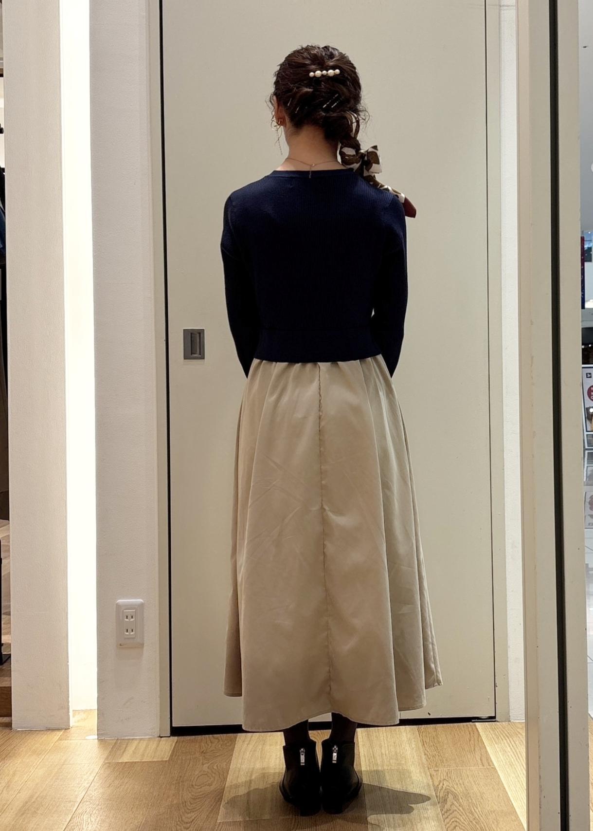 一見するとカーディガン+フレアスカートに見えるドッキングワンピースです。