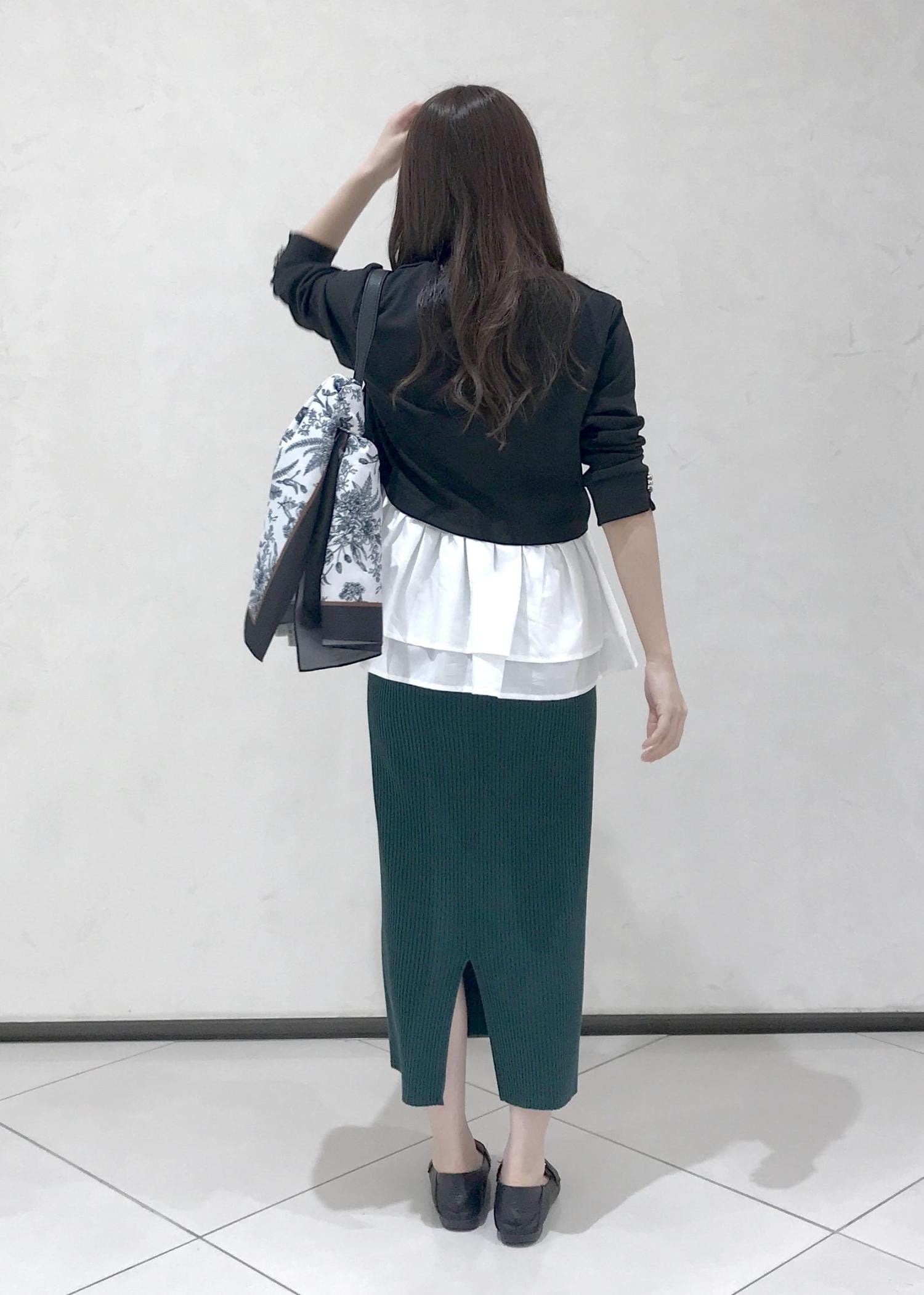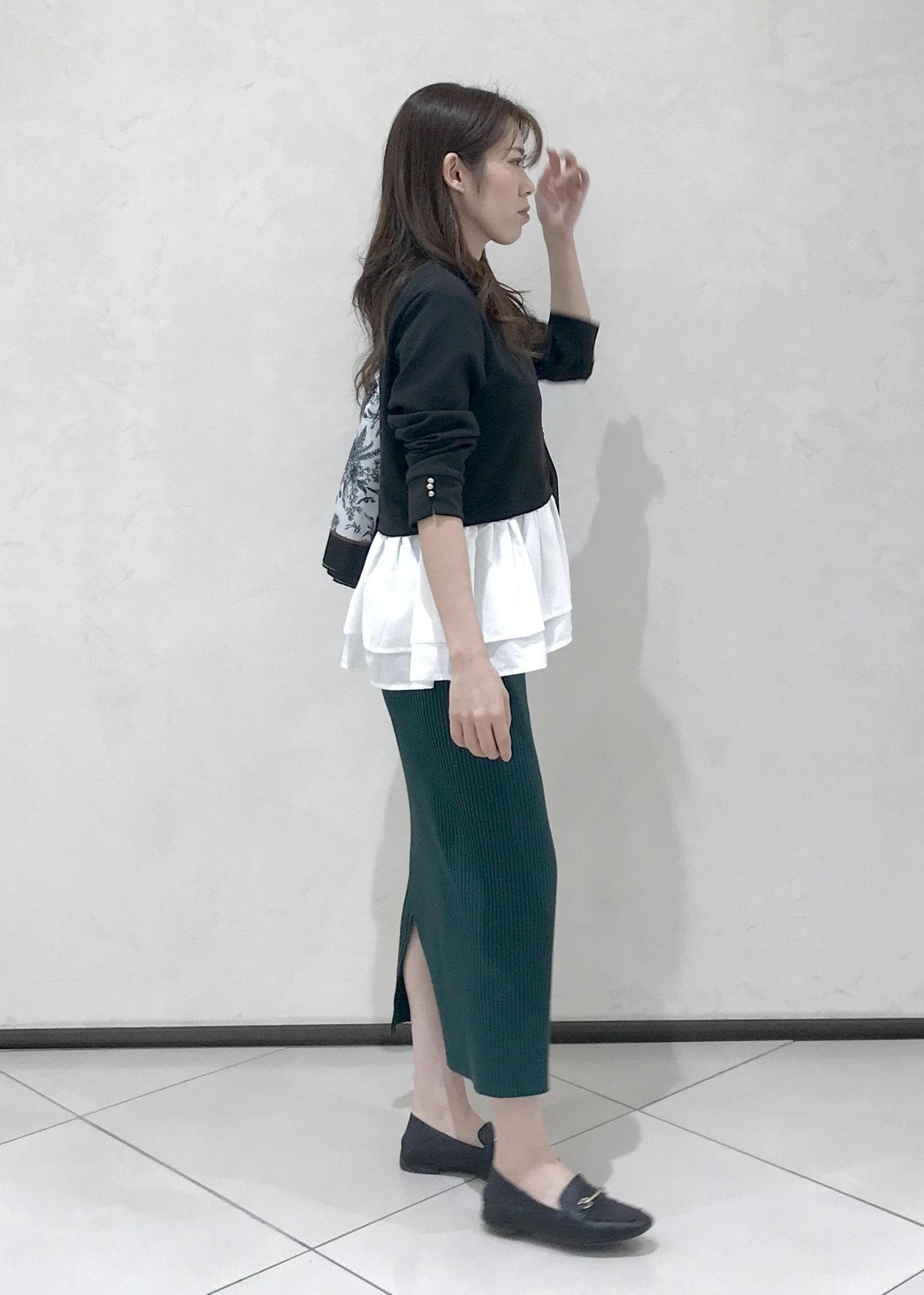 タイトスカートで低身長でも足首がしっかり見える長さです!生地は見た目よりも少し硬いが綺麗めカジュアルどちらでもお使いいただけます