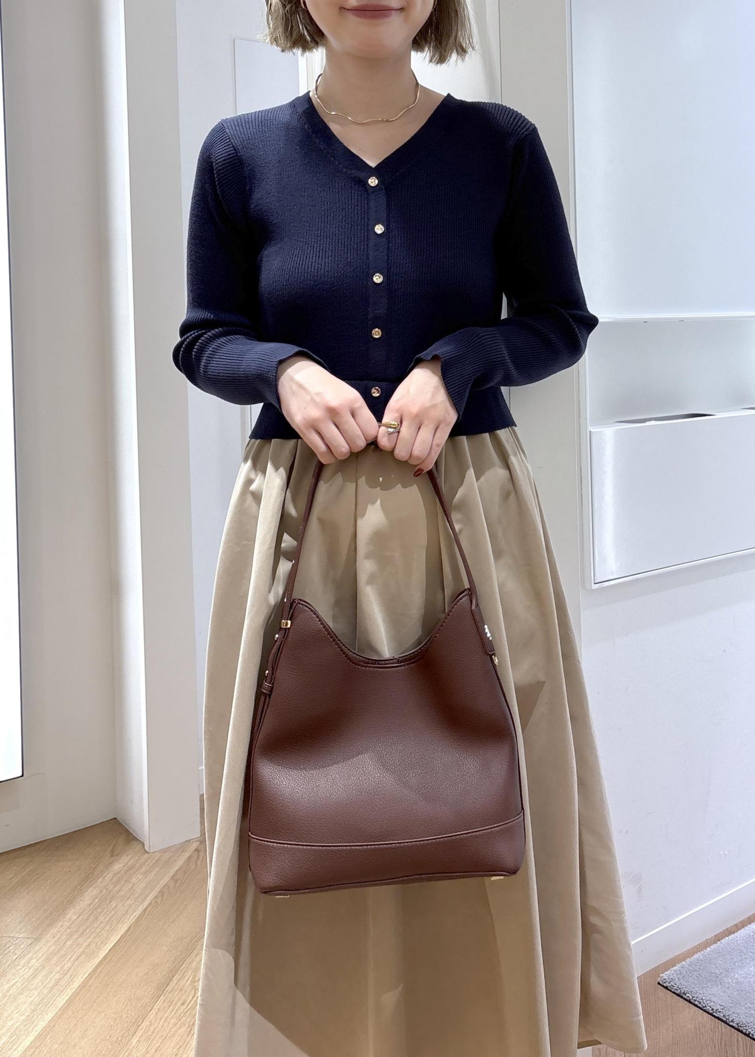 ハンドルの長さは調節が可能で、肩かけが可能。身体にフィットするバッグです◎
